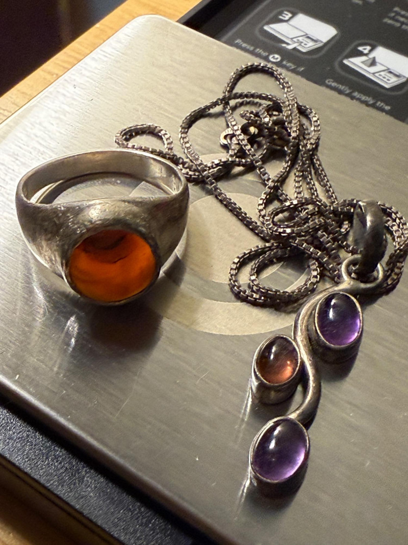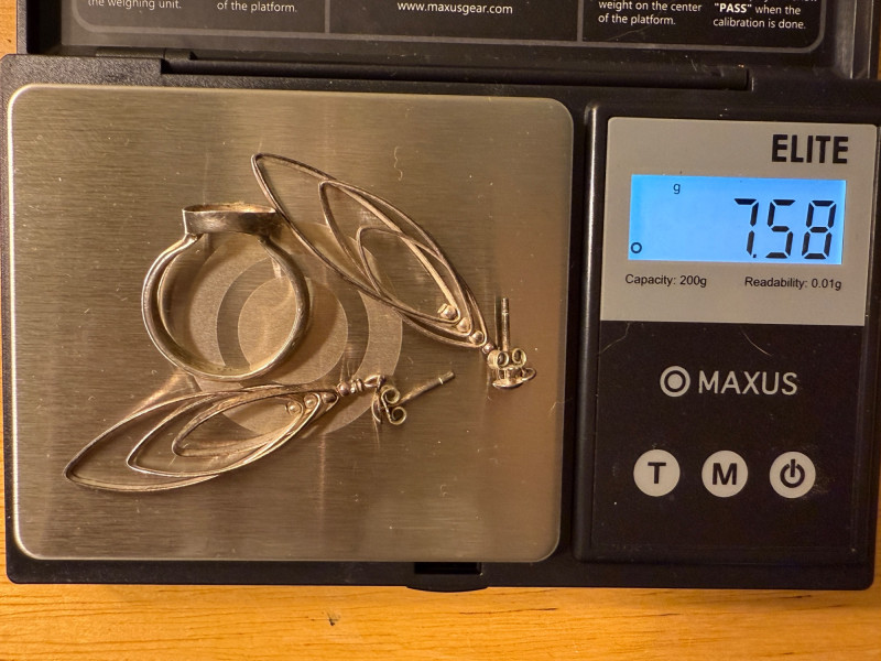 Sterling Silver Jewelry Thick silver cuff braclet 30.3g Earrings and ring setting 7.5g Sterling Necklace and Ring with Stones 12.29g