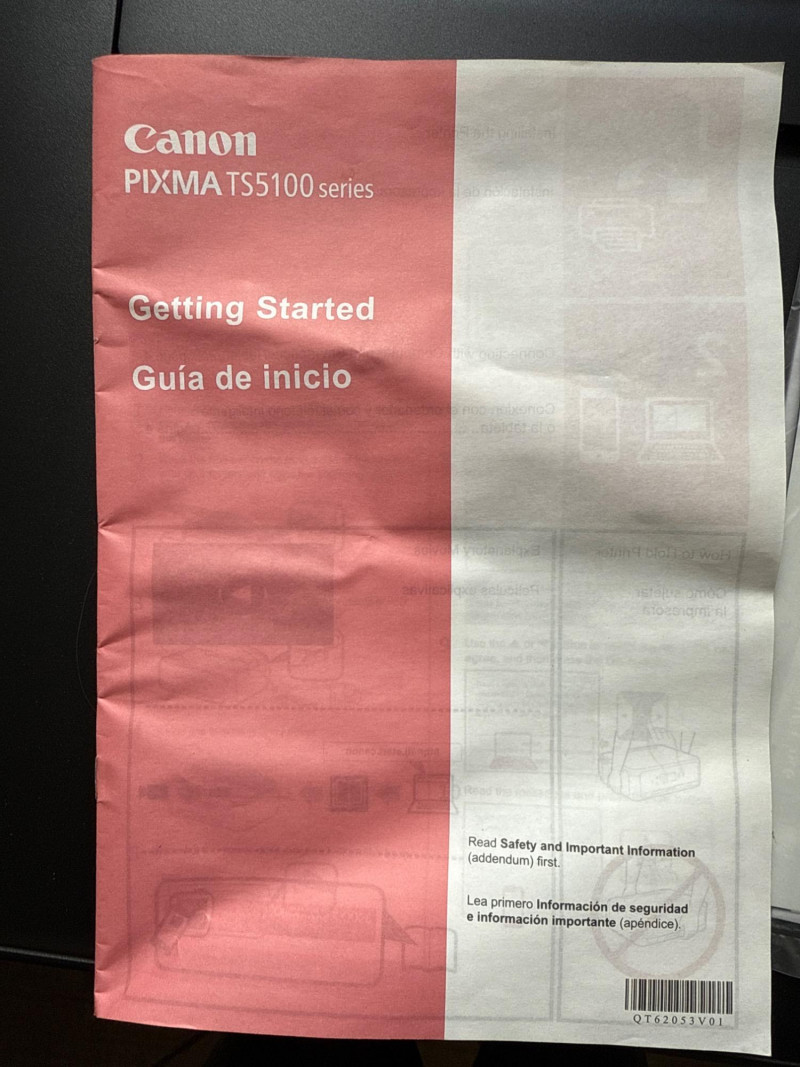 Canon Pixma TS5120 Printer NIP Powers on. Functions not tested.
