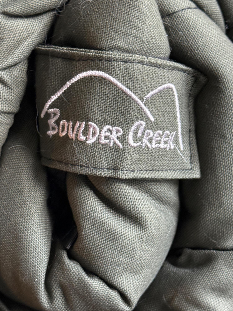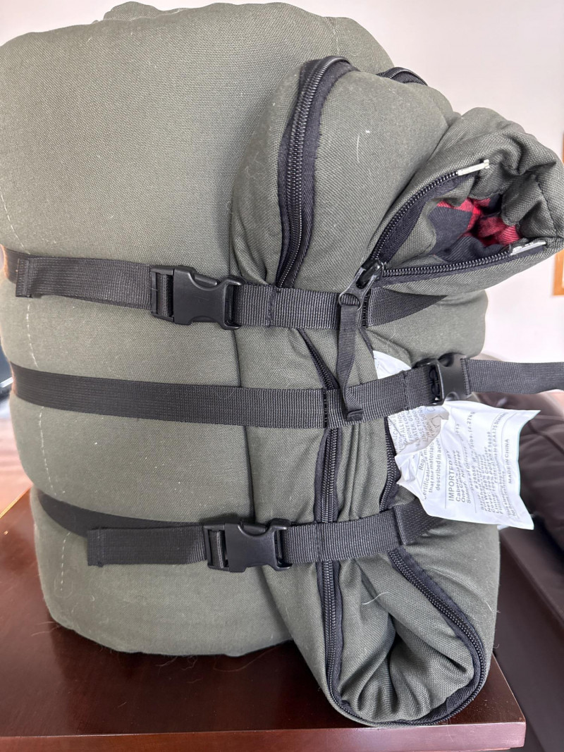 Boulder Creek Never Used Sleeping Bag from Cabela’s 36”x80” Green with red and black plaid flannel interior