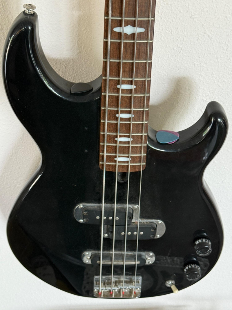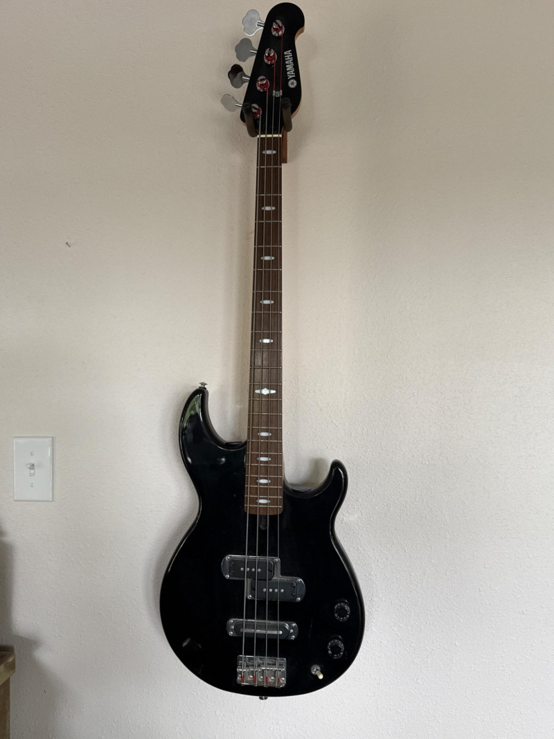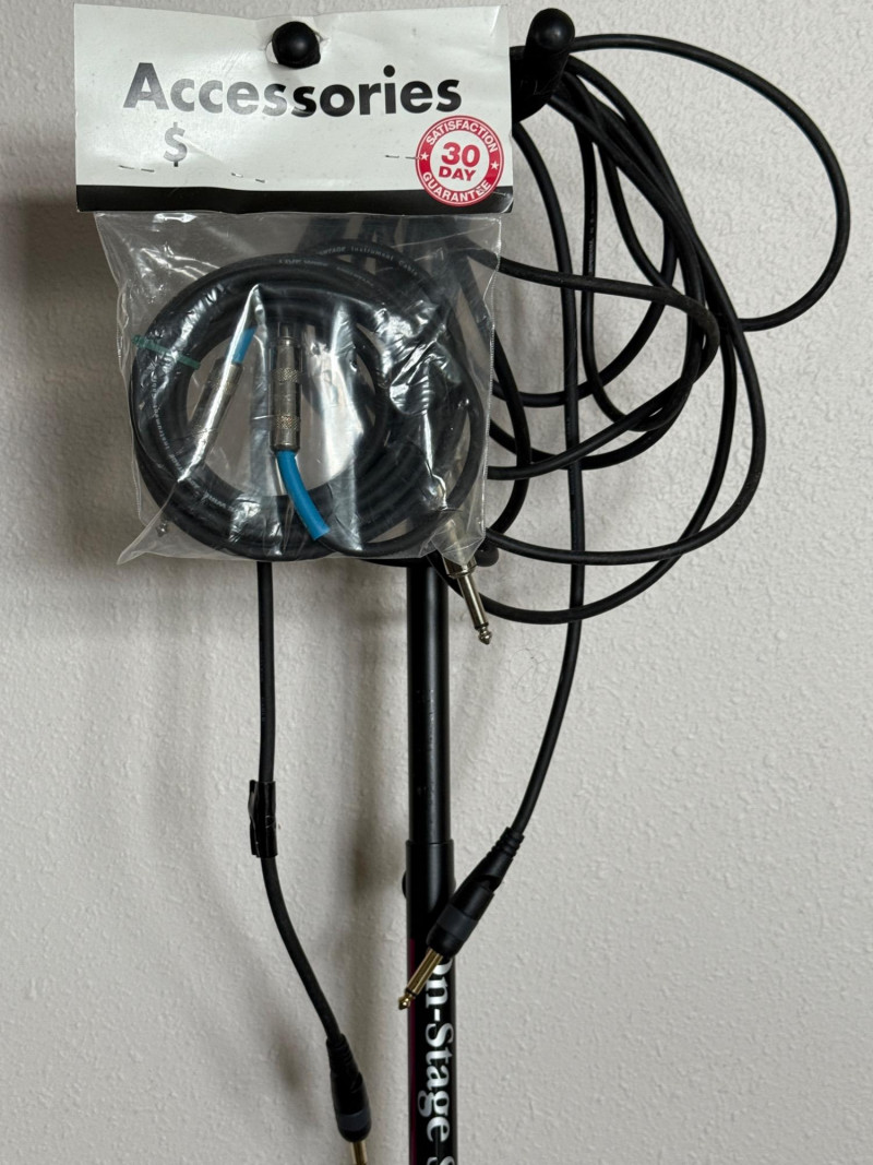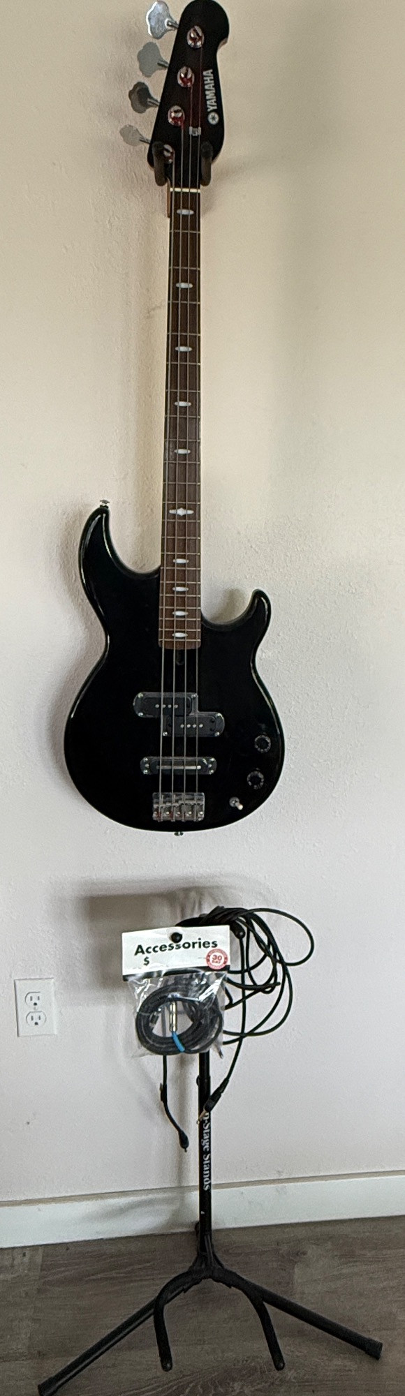 Yamaha Electric Guitar with stage stand and cords.
