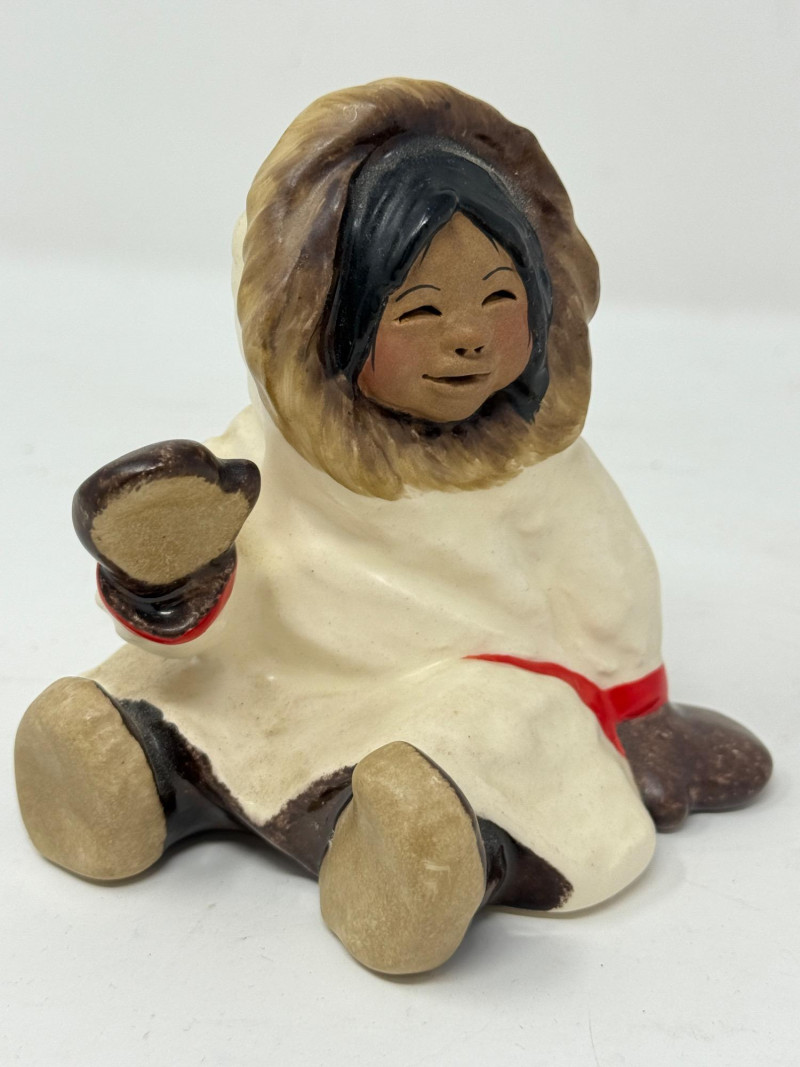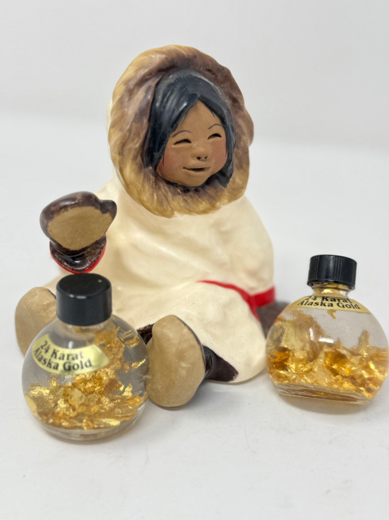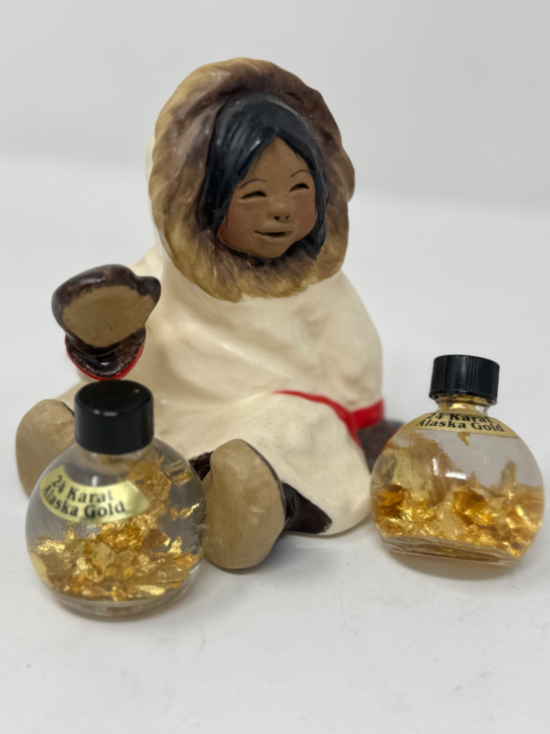 24K Alaska Gold Ceramic hand painted “Dinah” Inuit Figurine 1982 by Alaskan artist C. Alan Johnson Y141 4.5”x4”