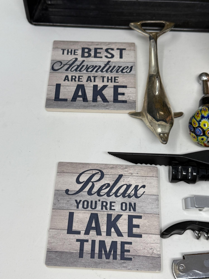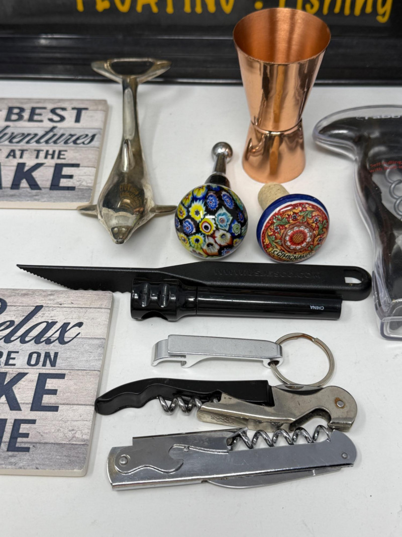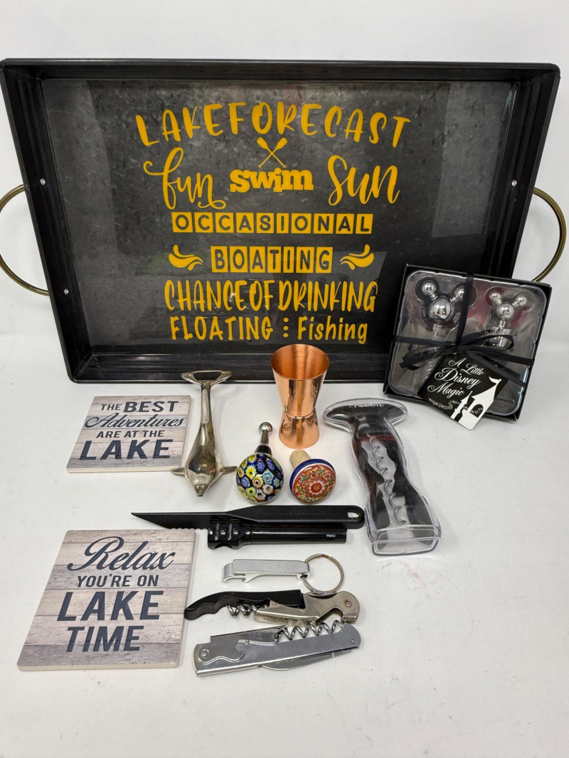 Lake Forecast Tray & Barware Rabbit cork puller Silver Dolphin Bottle Twist and Pop Top Opener Disney Parks Exclusive Gift Set - Mickey Cork puller and topper