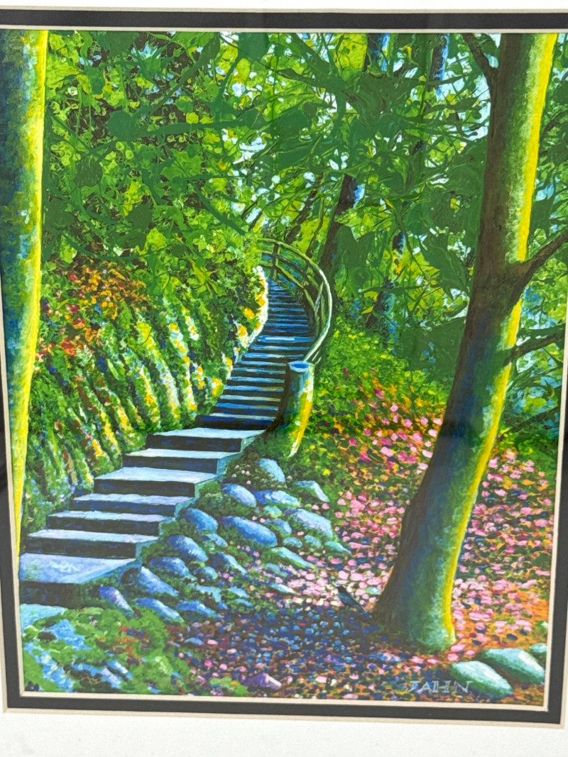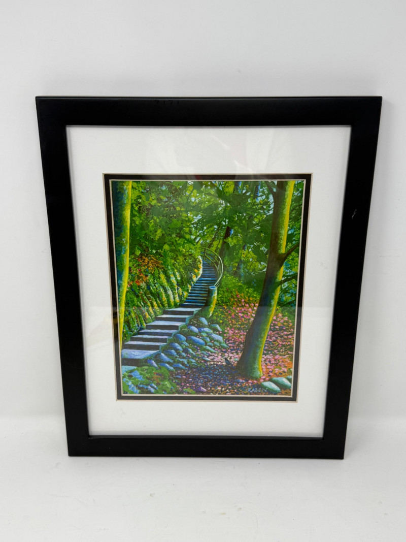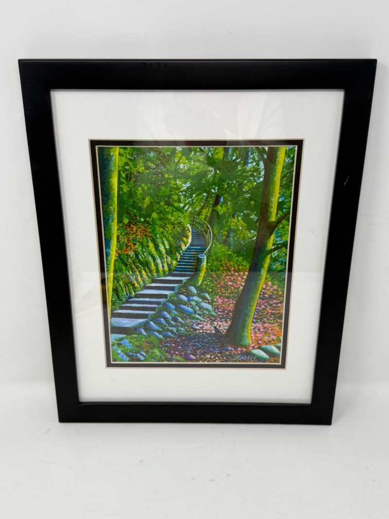“Stairway in the Wilderness” Limited Edition signed by local artist Richard Jahn #6/50. Double matted in black wood frame under acrylic. 12.5”x15.5”