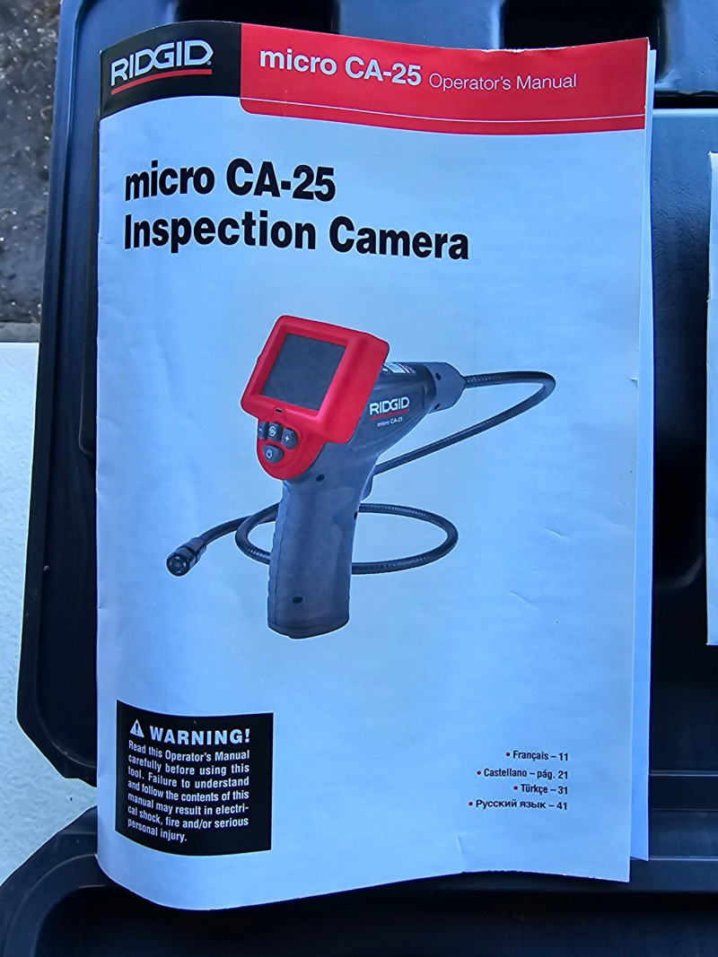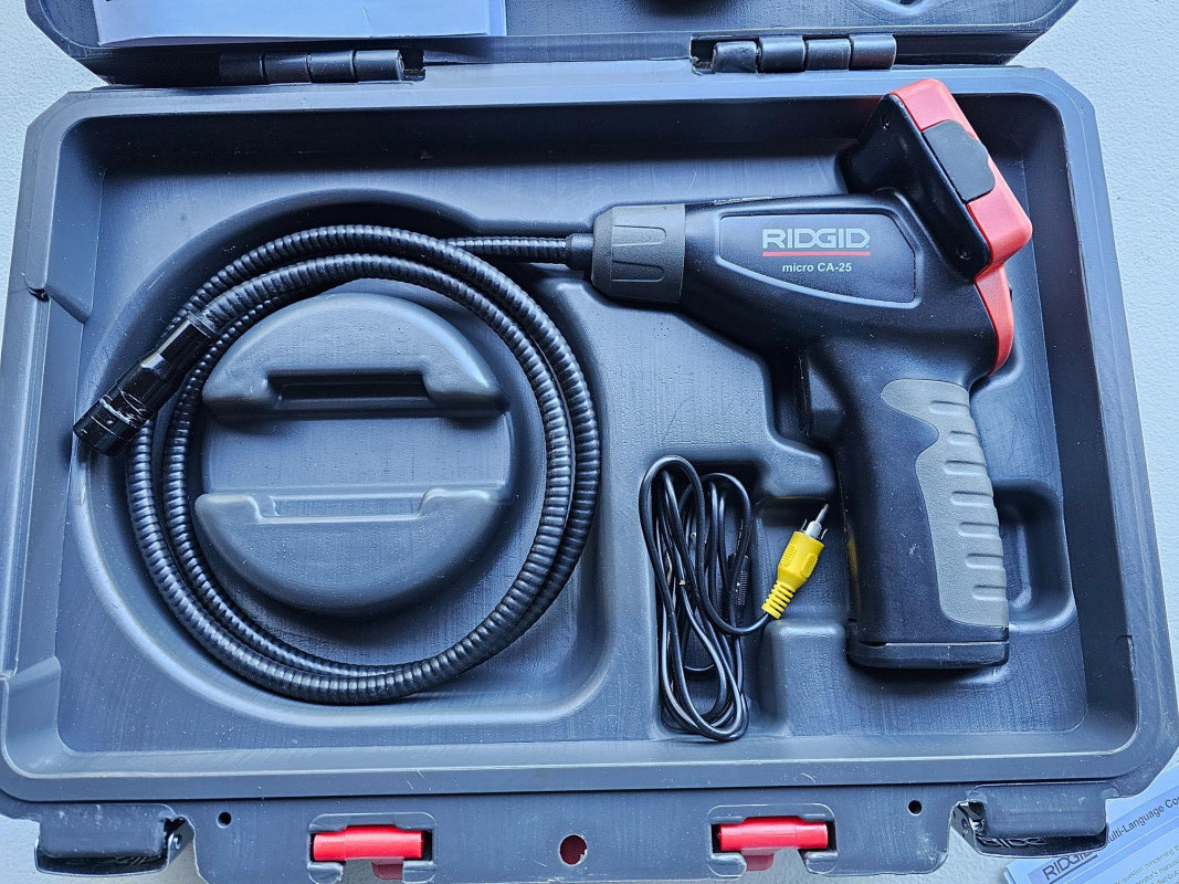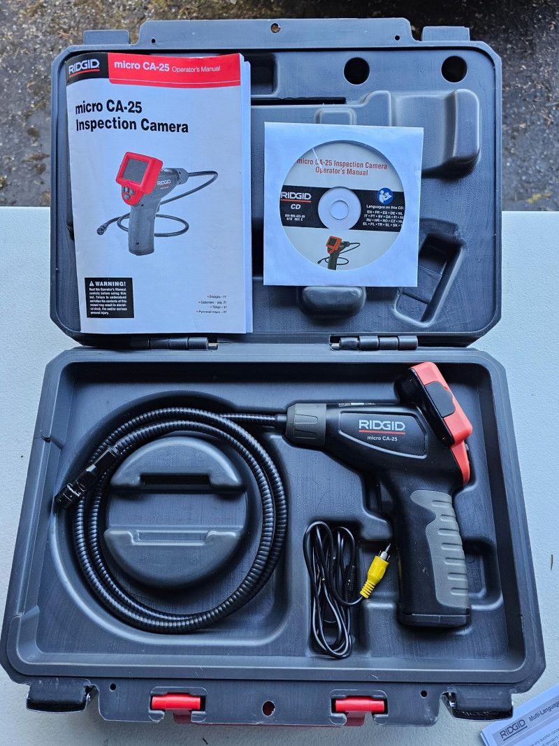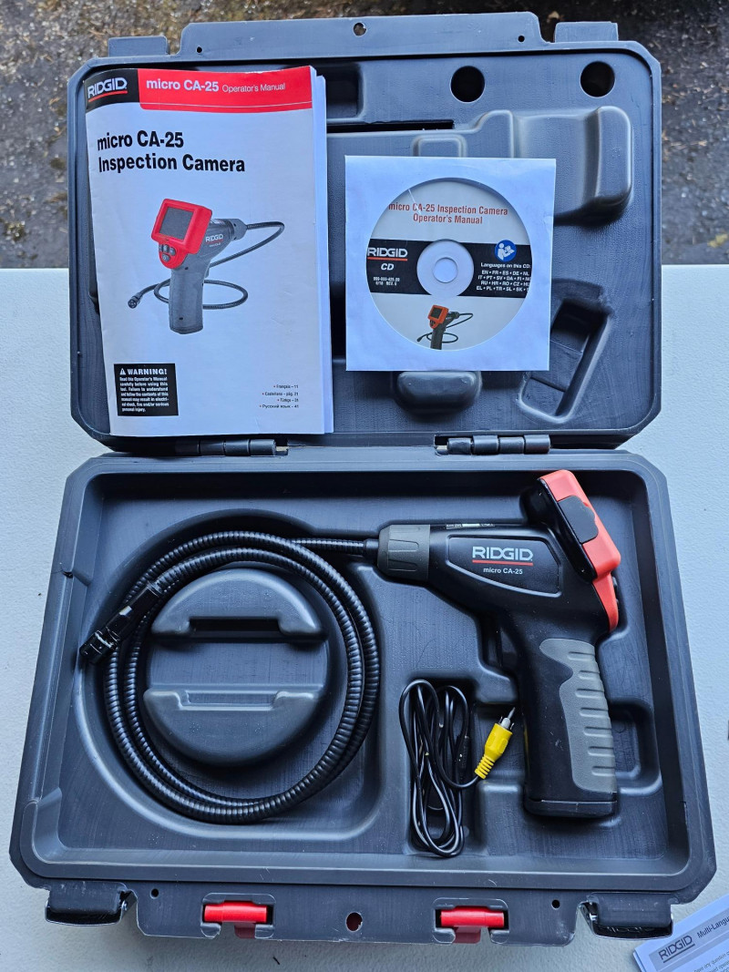 Rigid Micro CA-25 Inspection Camera Rigid Model #CA-25 CA-25 Micro Visual Inspection & Diagnostic Handheld Camera 2.7 in. Color Display 4 ft. Fixed Waterproof Camera Cable Looks nearly new Tested - Works Great! Includes hard case, operator's manual & CD Currently available at Home Depot for $129!