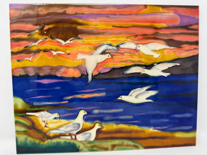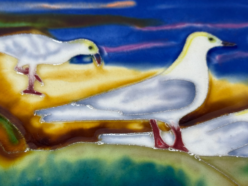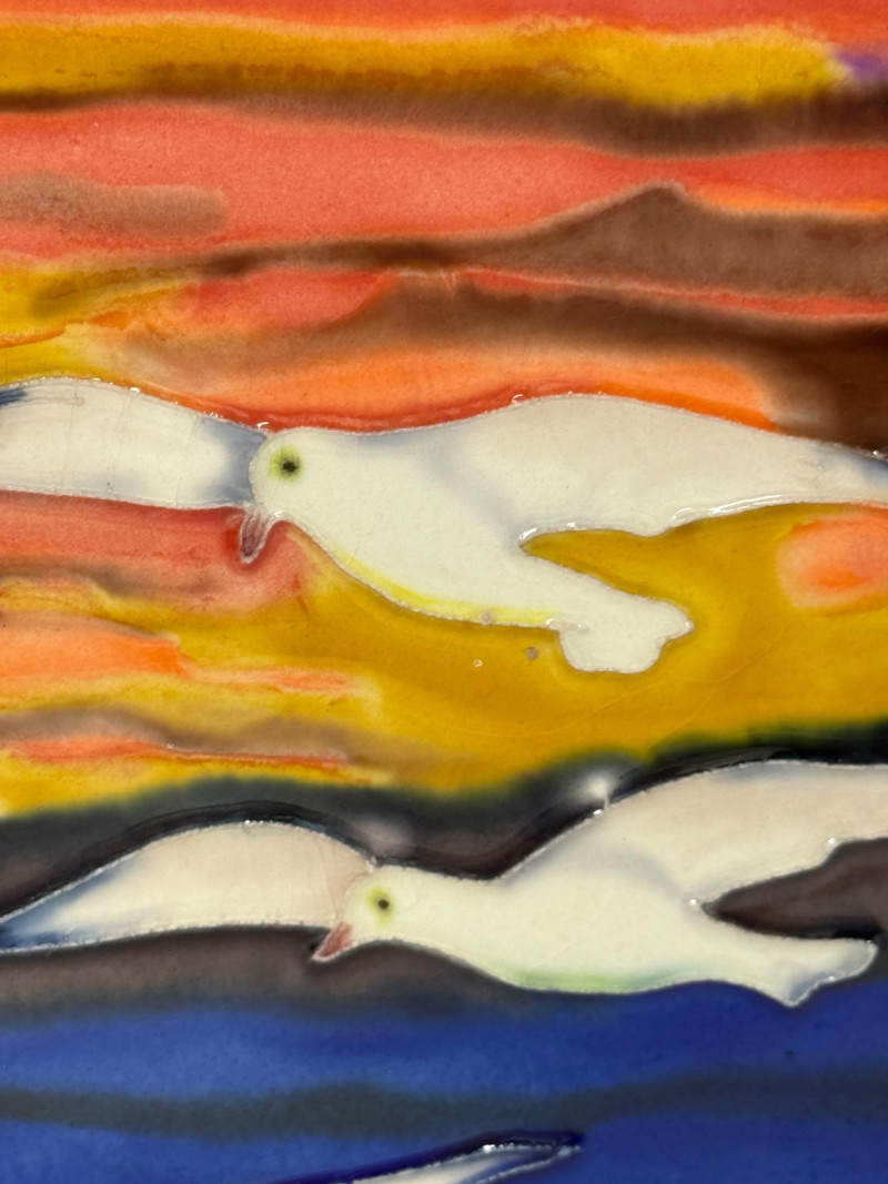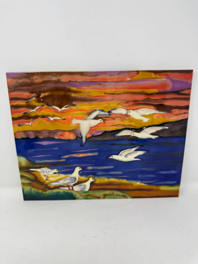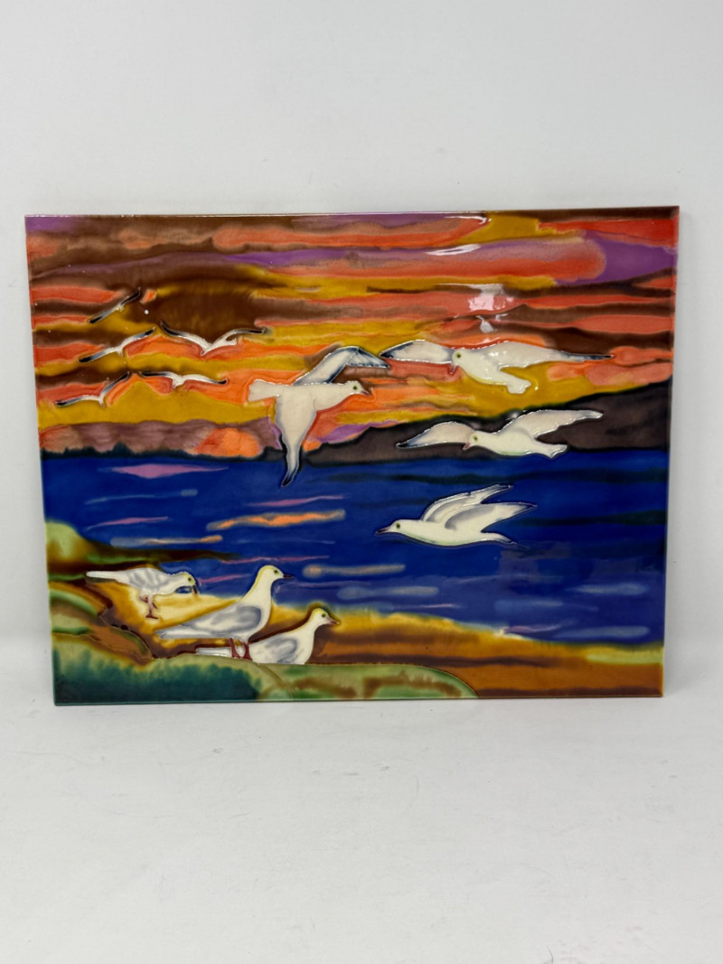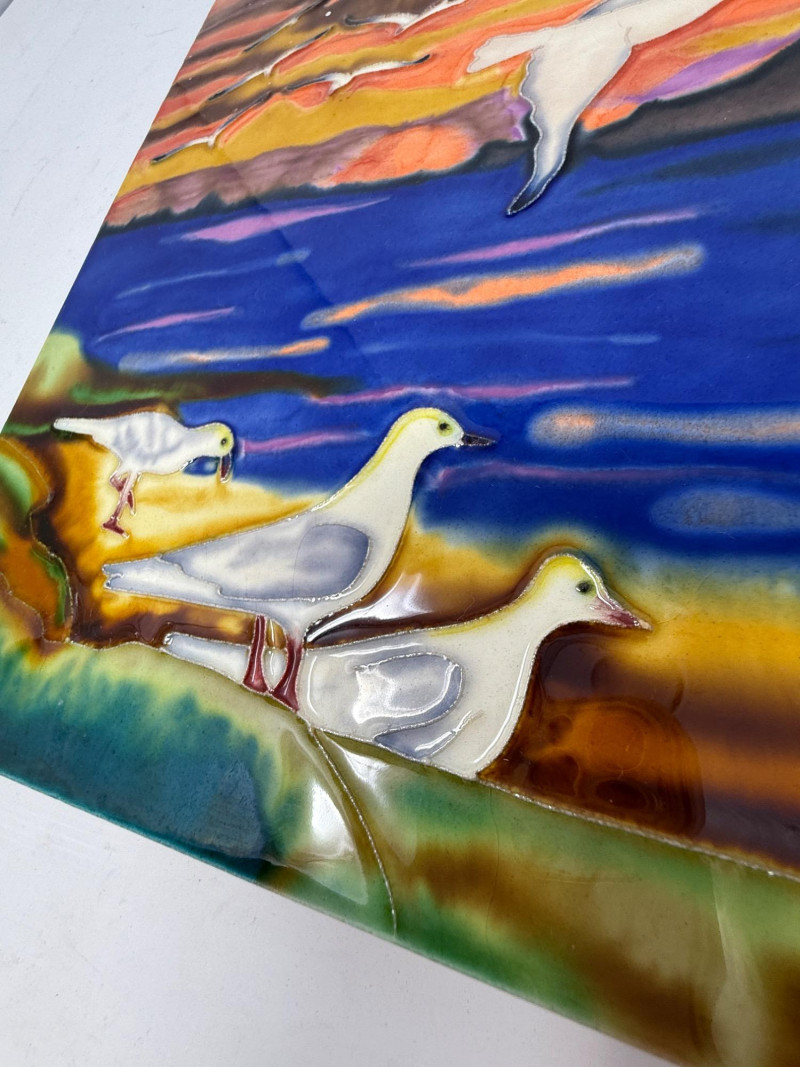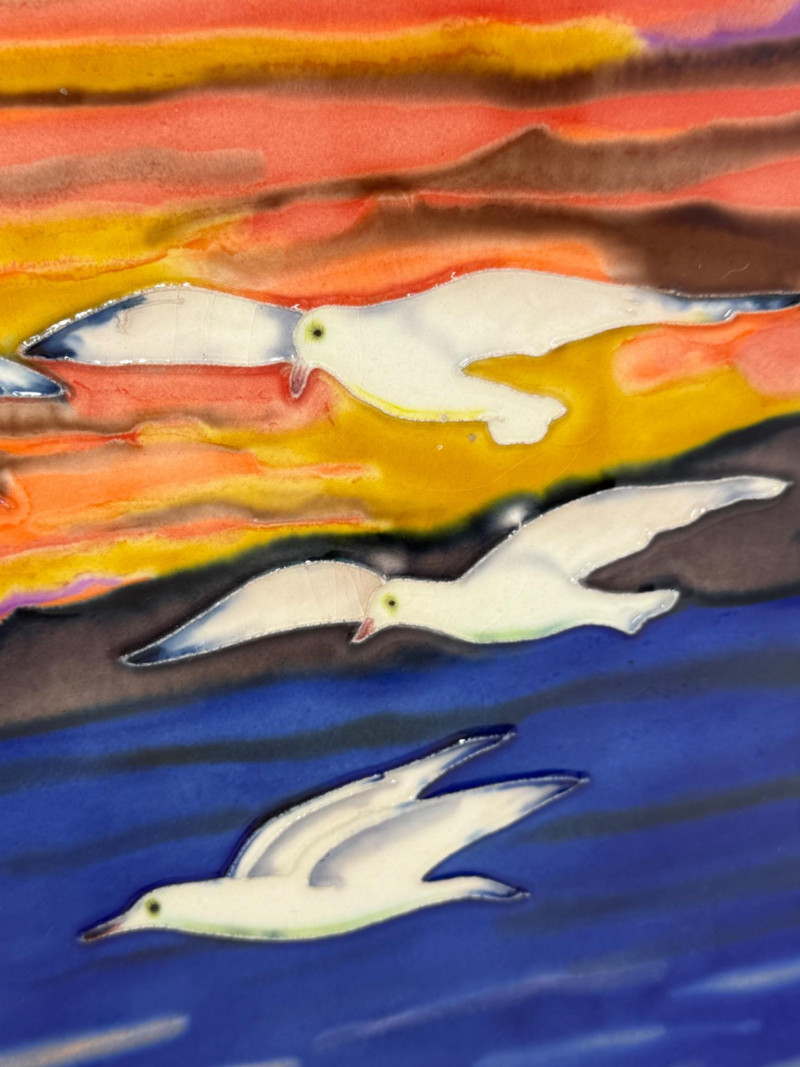 Seagulls on Glazed Ceramic with felt back. Unique use of glaze!