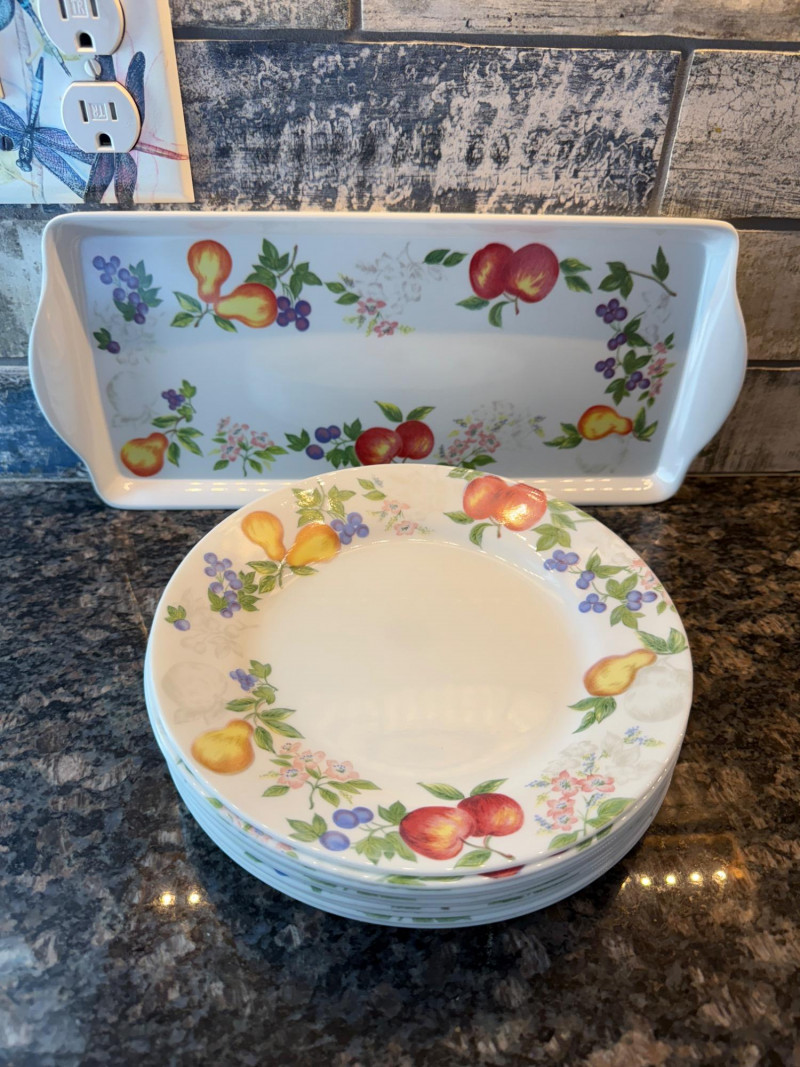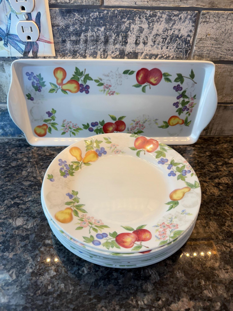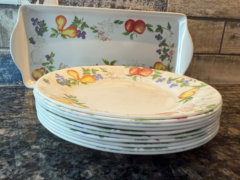 (10) Corelle Vitrelle Salad Plates & Matching Melamine Tray