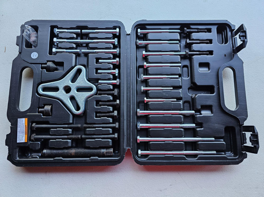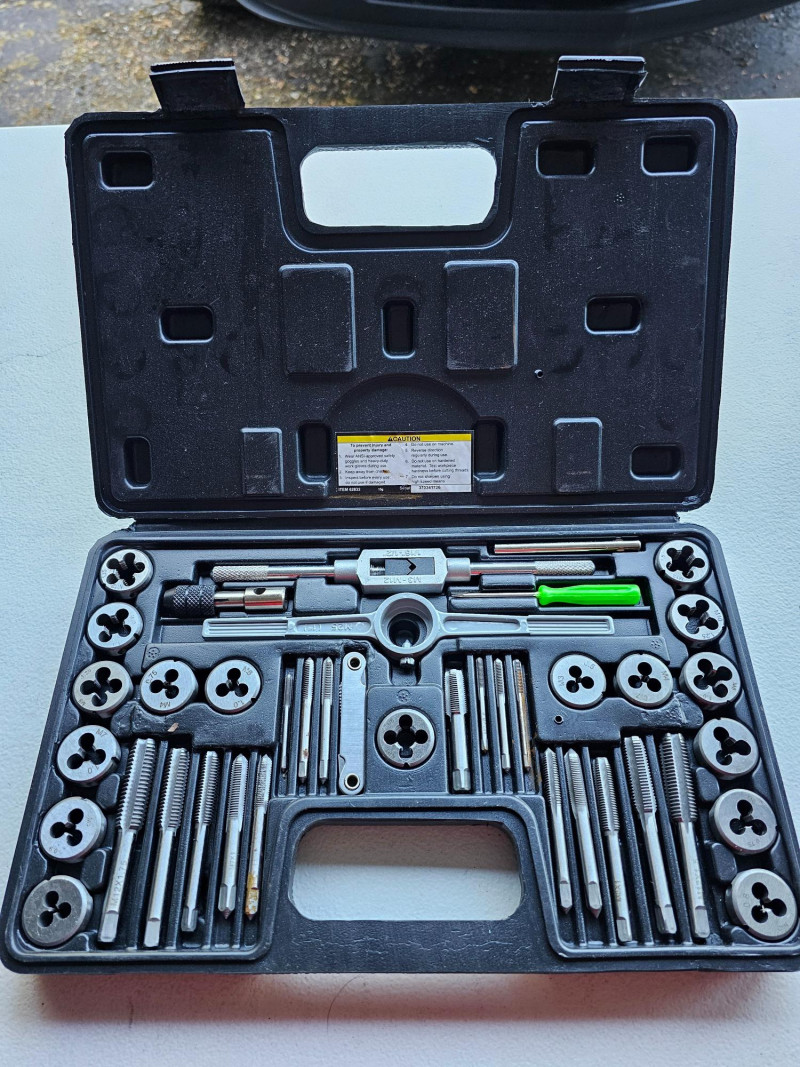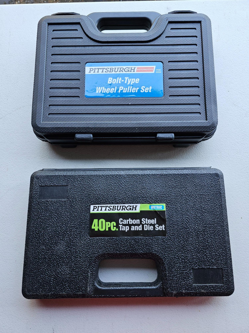 (2) Pittsburgh Tool Sets Pittsburgh Bolt-Type Wheel Puller Set Item #62620 Pittsburgh Carbon Steel 40-Piece Tap & Die Set (Metric) Item #62832 Both appear complete and include hard cases!
