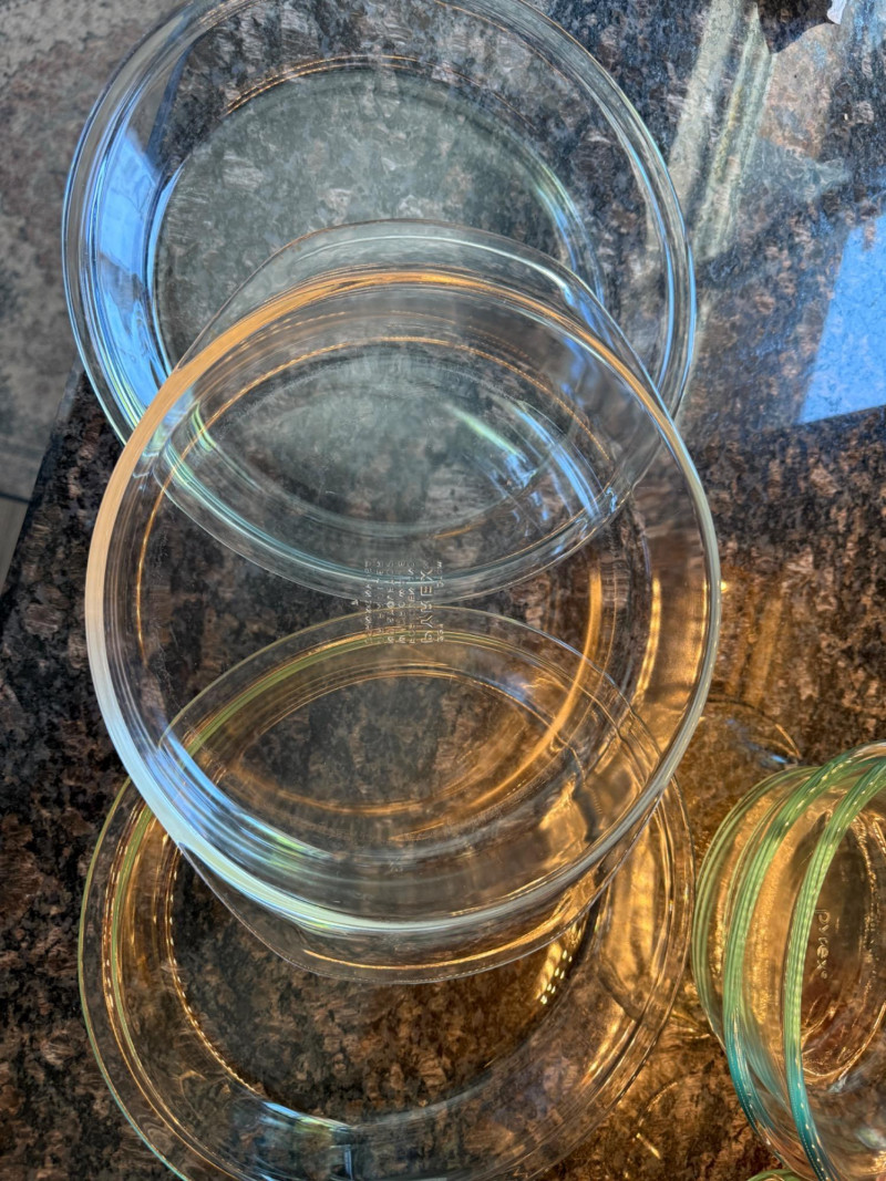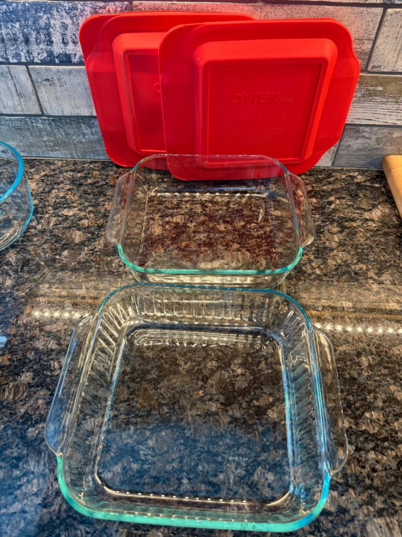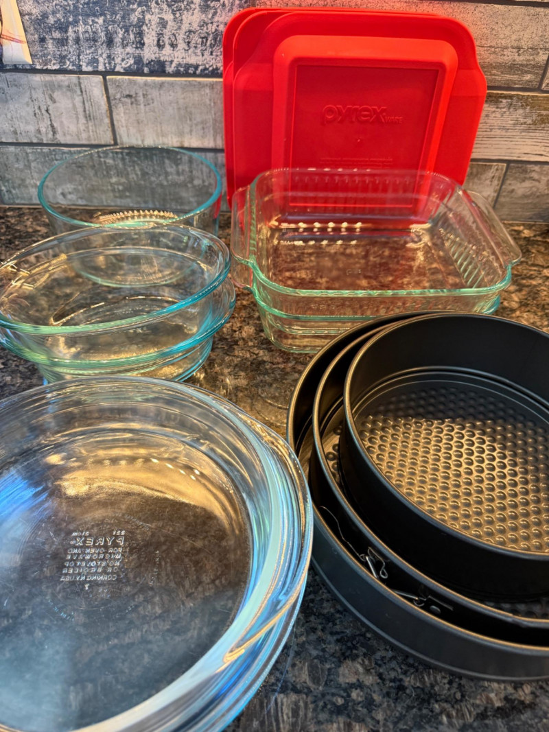Pyrex Glass Bakeware & Non-Stick Springform Pan Set 2 square bakers with lids glass bowl 2 9” pie plates 9” round baker with handles 2 oval glass bakers 3 piece springform set