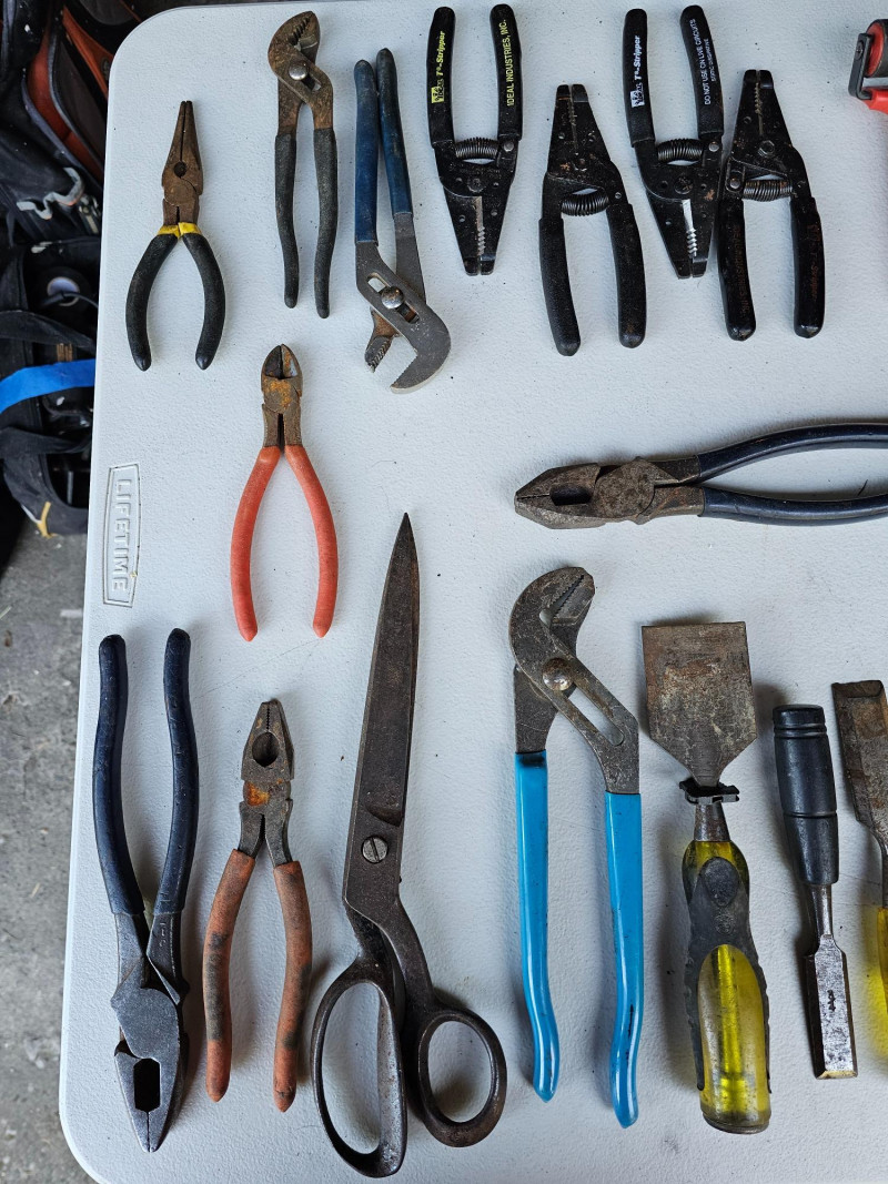 Lot # 239 - Tool Bag Full Of Pliers, Strippers, Chisels, Rollers & More!