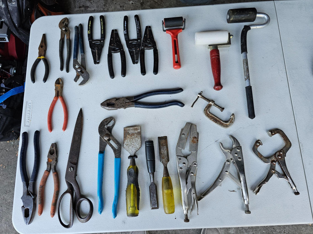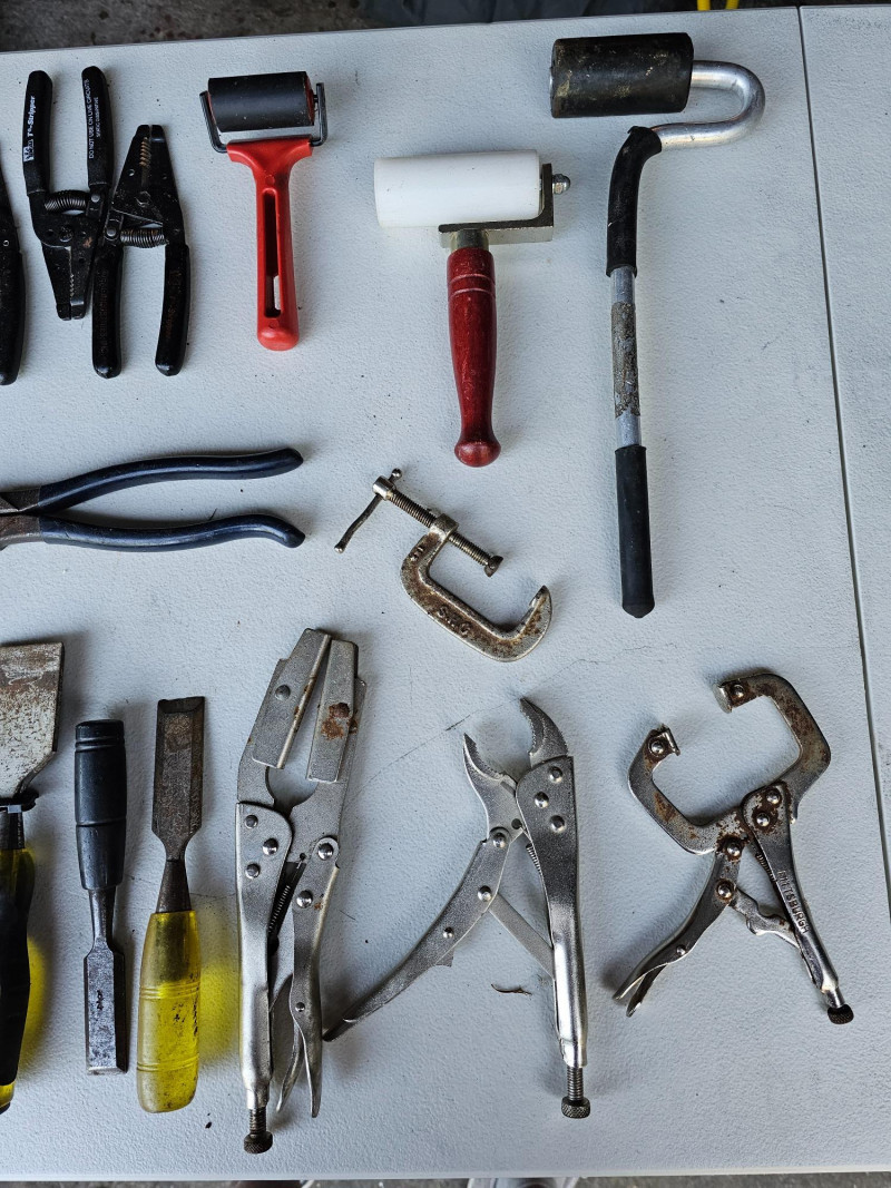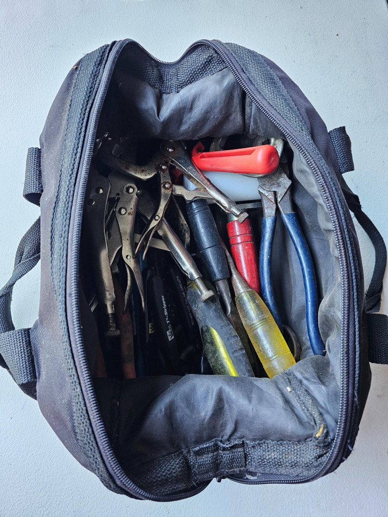 Tool Bag Full Of Pliers, Strippers, Chisels, Rollers & More! 23 Hand Tools In All! Tool Bag Size: 6"T x 14"W x 7"D