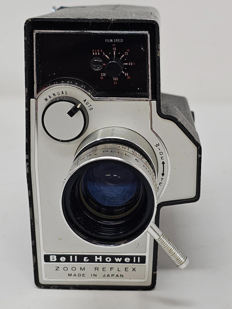 Bell & Howell Zoom Reflex 8mm Movie Camera Bell & Howell Model #315 Produced around 1964 Autoload function The Zoom Reflex was designed for 8mm film, a popular format for home movies during the mid-20th century. The camera features a zoom lens, allowing for versatile shot compositions, and a reflex viewfinder, providing a more accurate view of what was being recorded Appears to be in nice condition (see pics) Includes manual Tested - Works!