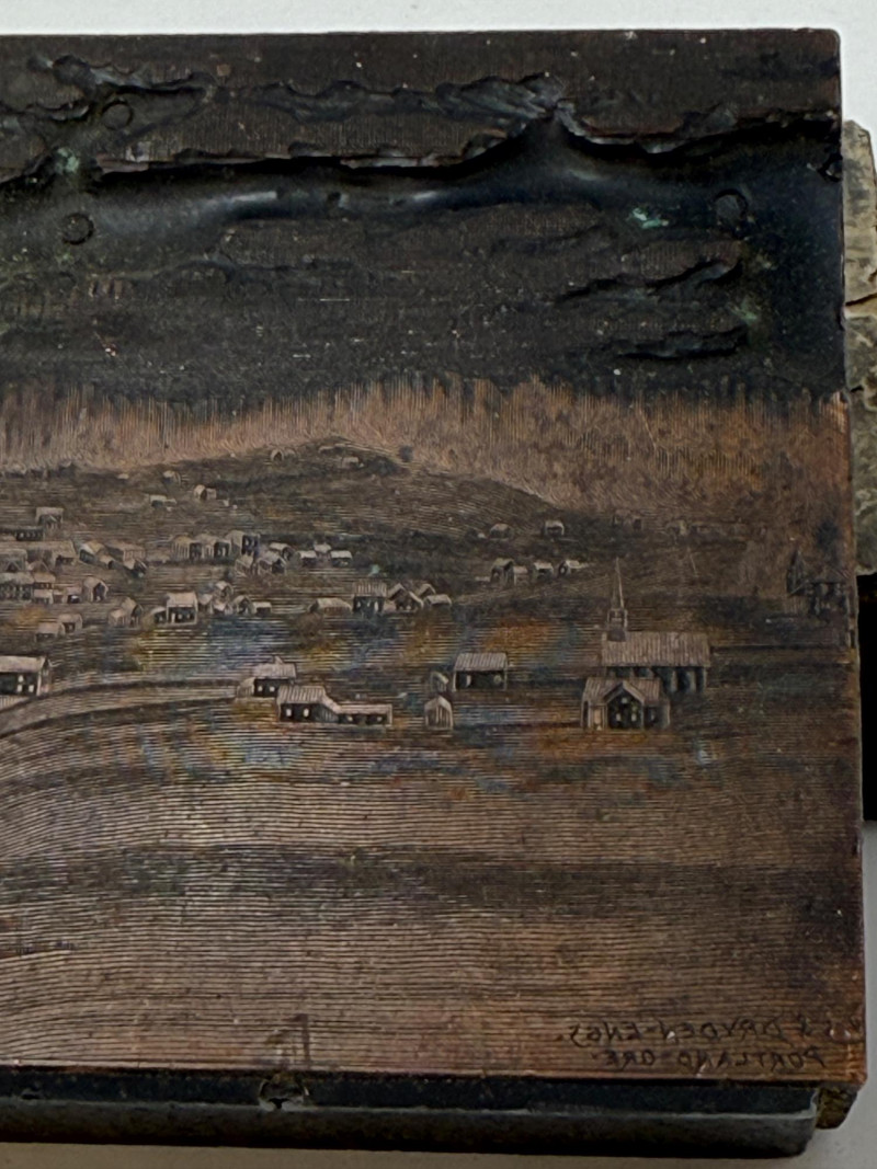 Metal Reversed Etching Plates of Portland - Astoria & Old City Scape Small one is of SW Washington and Astoria OR. The other is marked 1890 The larger plates are approximately 4x3”
