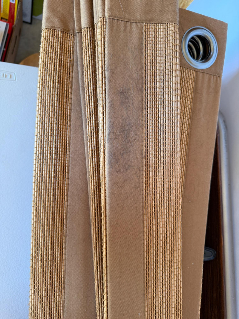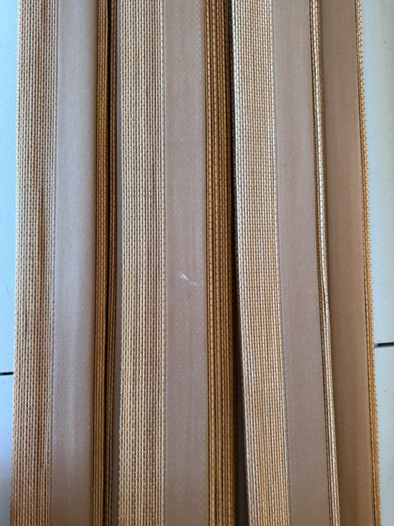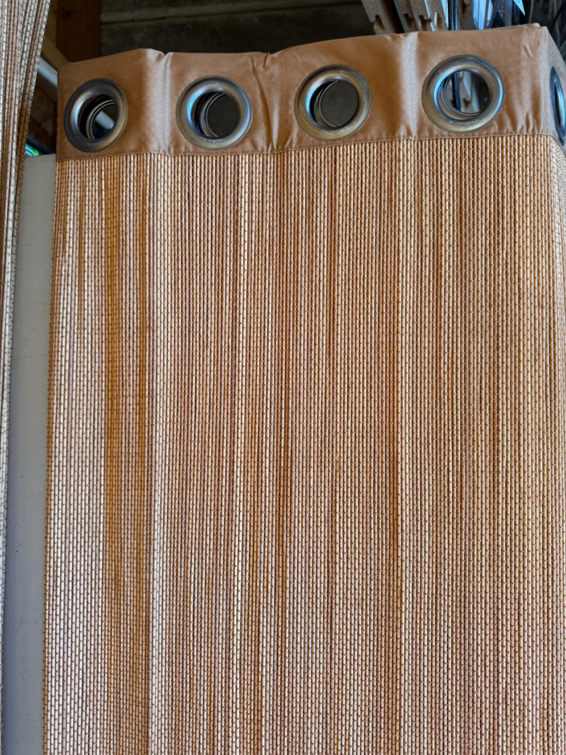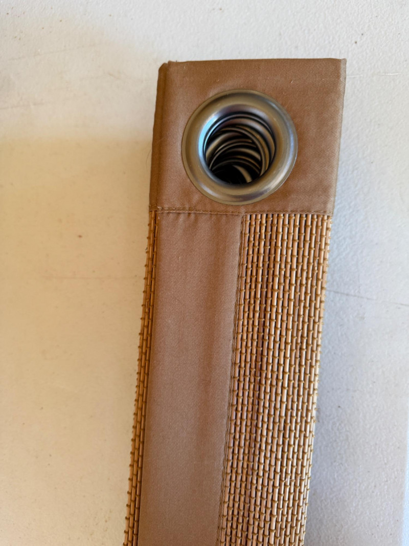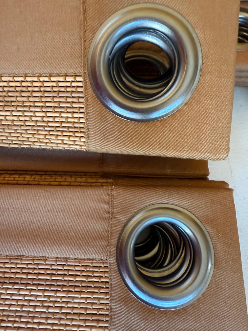 8 Horizontal Matchstick Grommet Top Curtain Panels (8) Bronze grommet top with cotton fabric edges. Good condition, a couple panels need a tape roller for car fur. See pics.