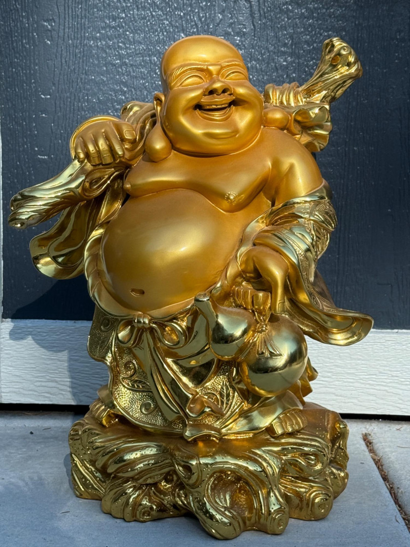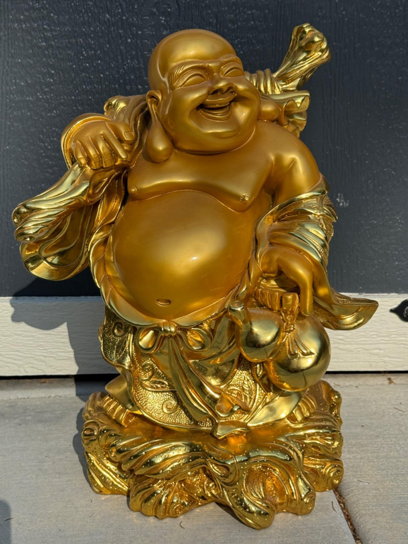 The Laughing Buddha, also known as Budai, is a popular symbol of happiness, abundance, and contentment in Feng Shui and Buddhist traditions. He is often depicted as a jolly, bald monk with a large belly, symbolizing wealth and prosperity. The image of the Laughing Buddha is believed to bring good luck. 7x24x15” Composite statue and heavy.