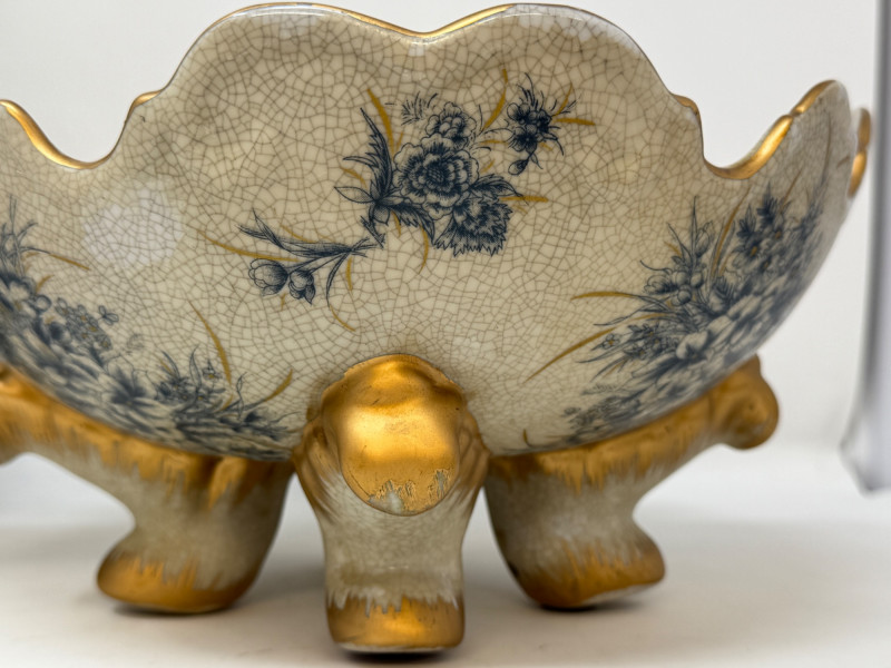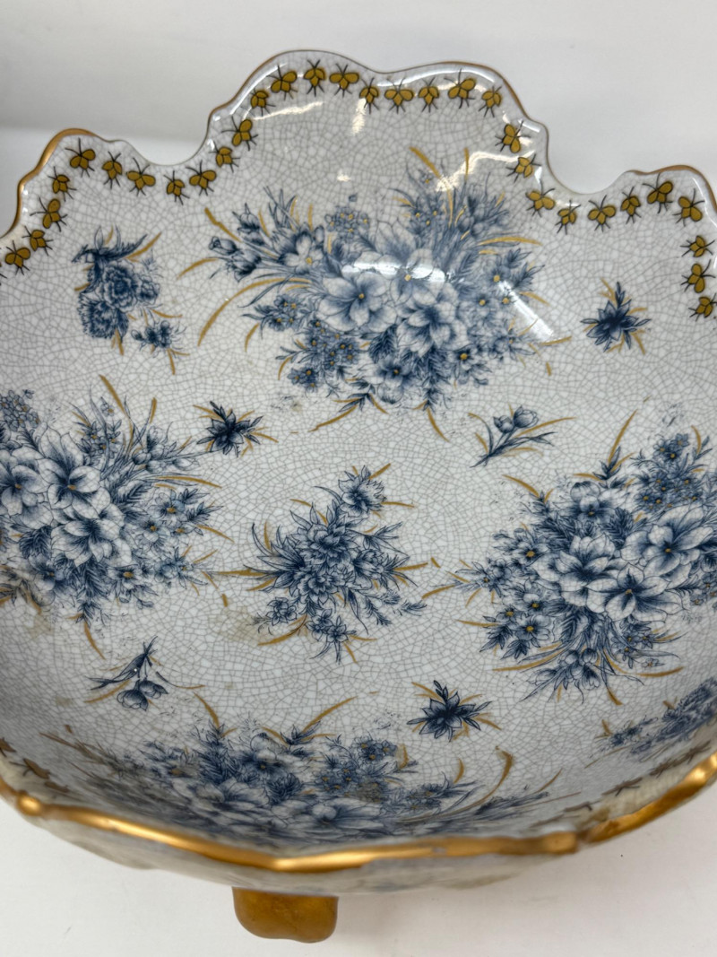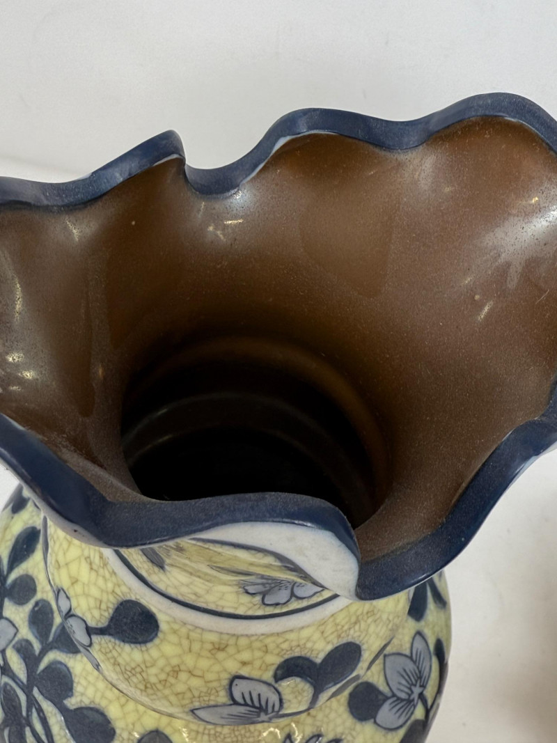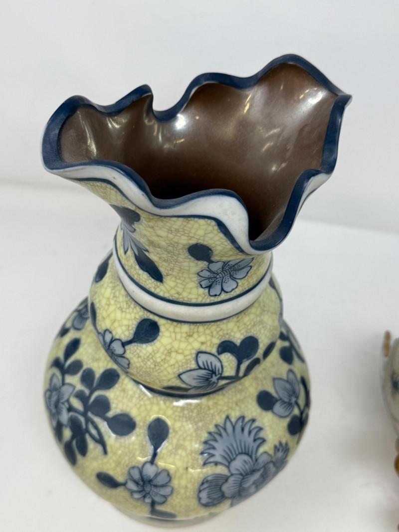 Chinese Crackle Vase and Footed Bowl Crackle vase with scalloped top is 7x13”