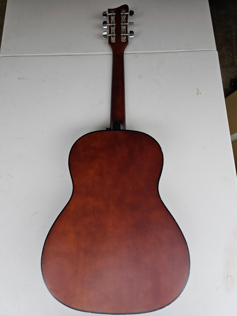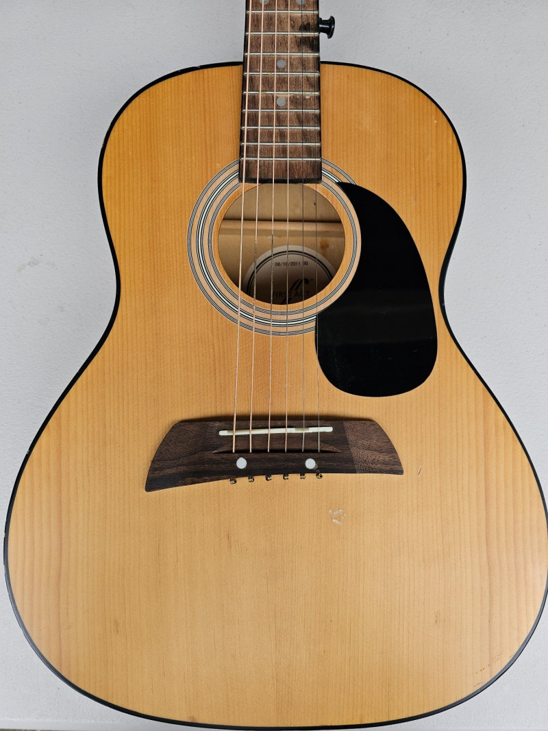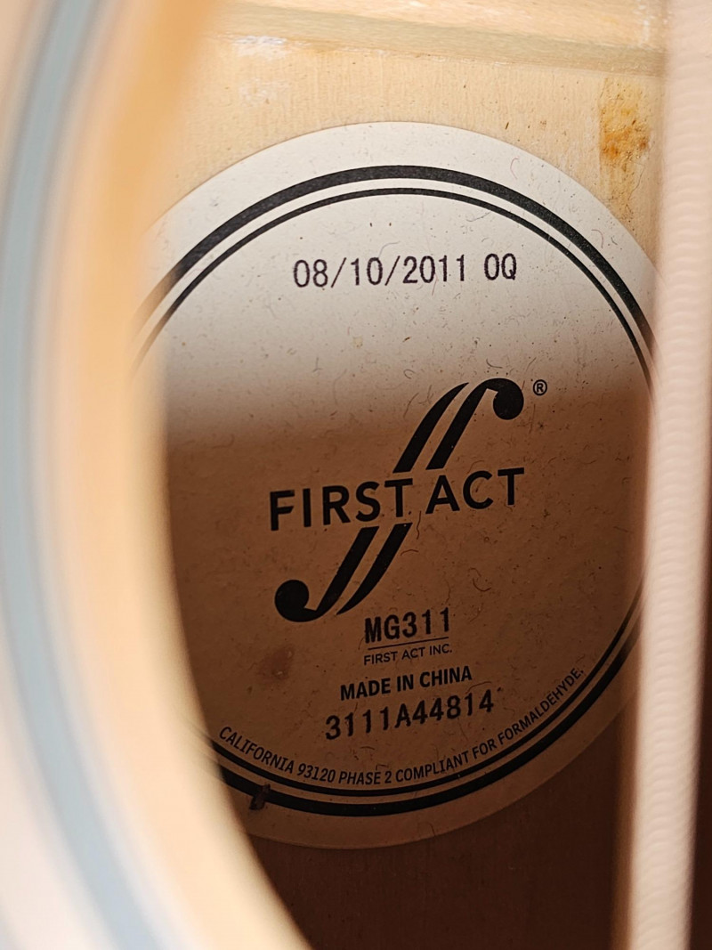 First Act Acoustic 6-String Guitar Model #MG311 Mfg Date: 8/10/2011 Appears to be complete and in good used condition (see pics). Has a couple of dings on the front 35"T x 13.5"W x 3.5"D