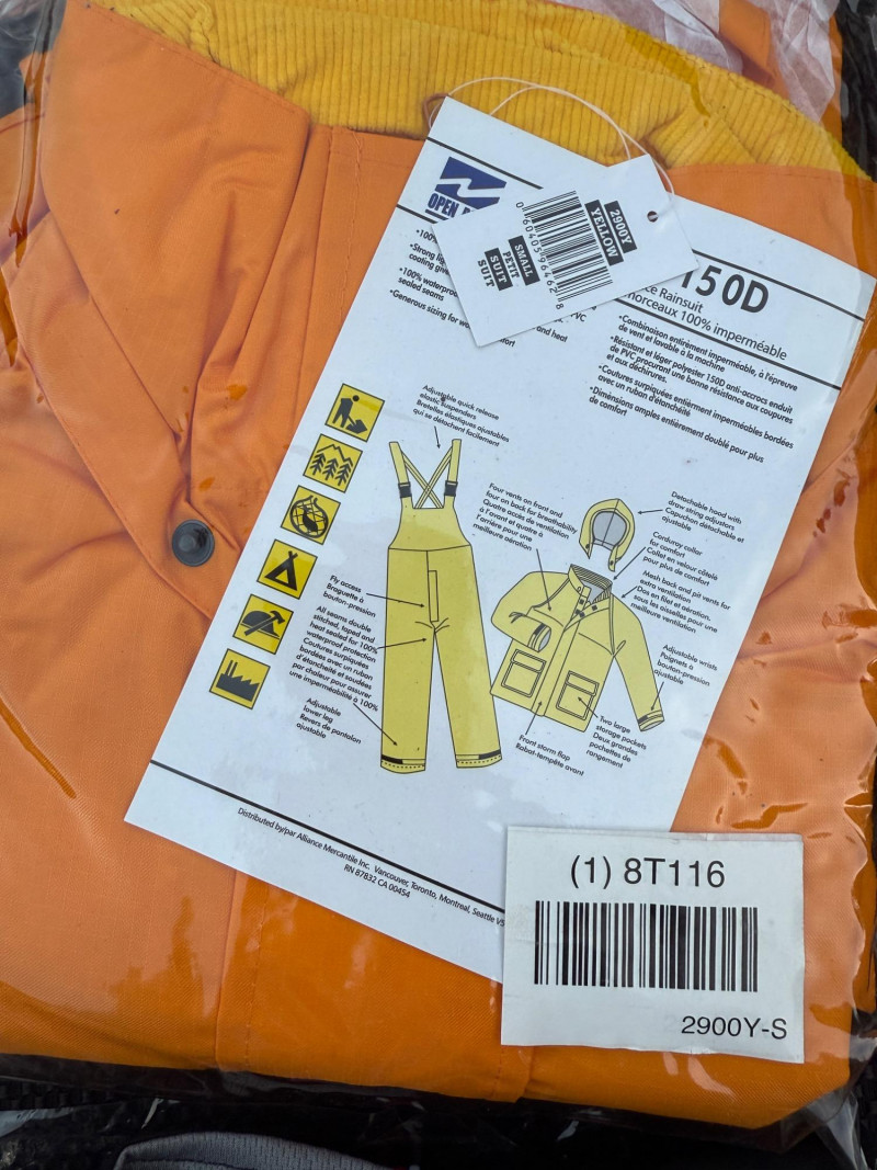 Lot # 119 - Rip Stop 3 Piece Rain Suit & Muckleshoot Zip Up Jacket XXL