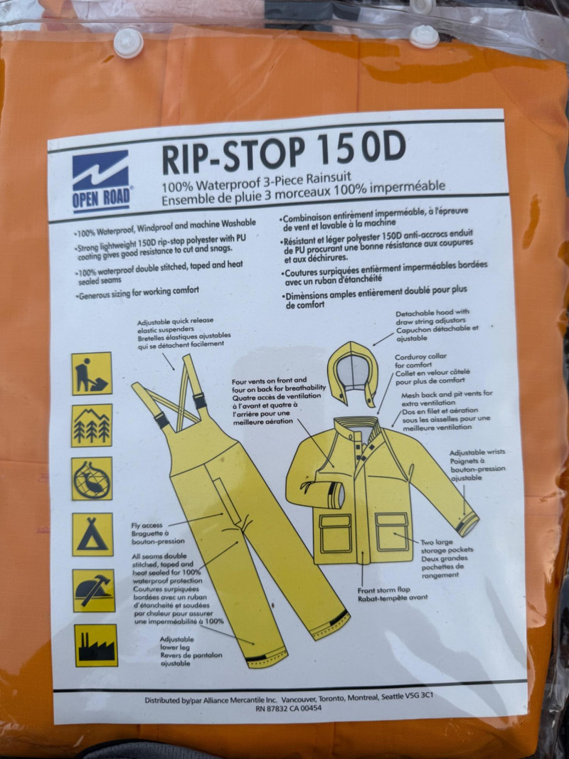 Rip Stop 3 Piece Rain Suit & Muckleshoot Zip Up Jacket XXL