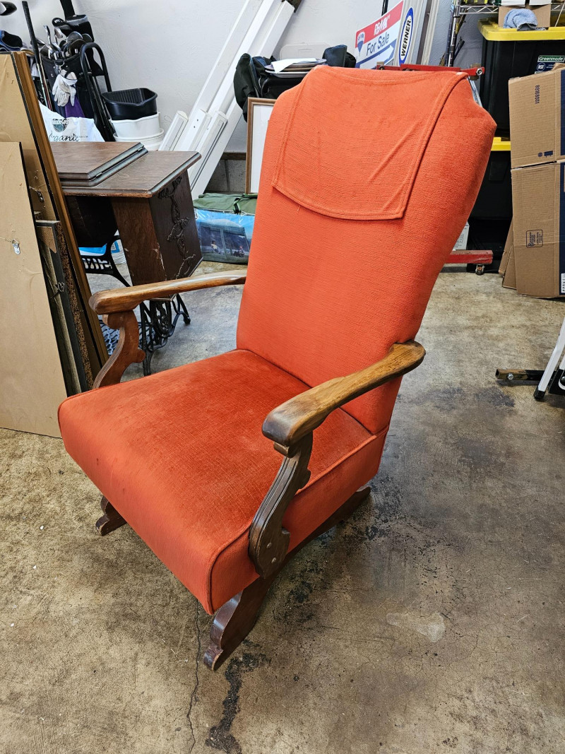 Lot # 126 - Antique Red Upholstered Rocking Chair