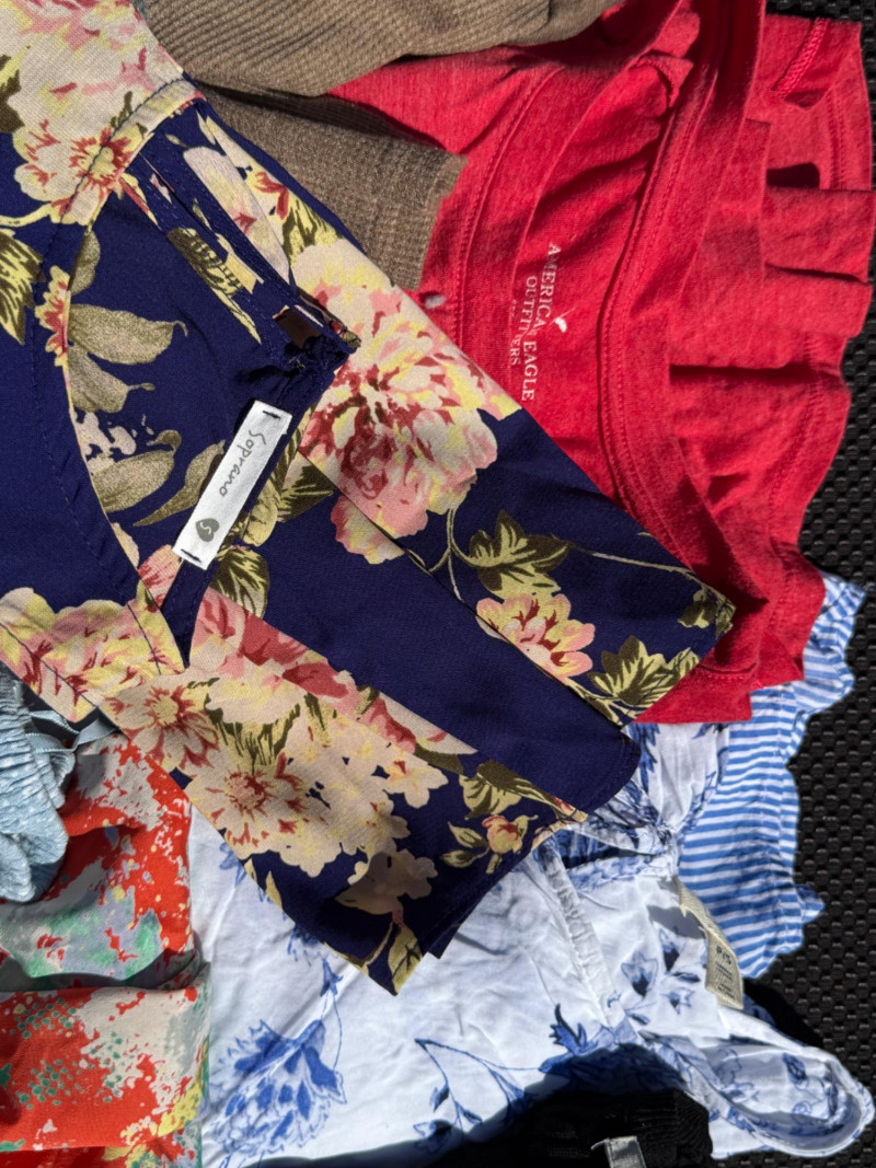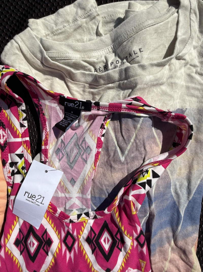 Womens/Teen Clothing #19 42 total pieces. 0-5 H&M, Levis, Guess AE, GAP, Aeropostale Abercrombie, Banana Republic, Rue21 Ralph Lauren Polo pink plaid shoes 4 Junior Anyi Lu black patent leather pumps Size 35 3 pair Generic slippers