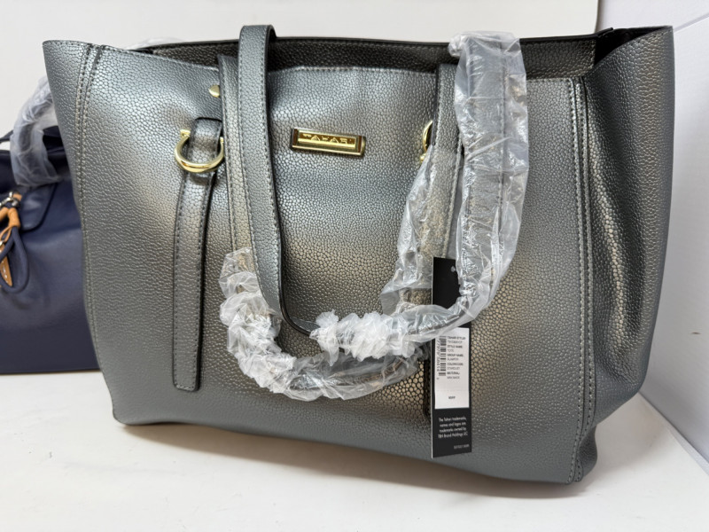Nautica and Tahari Handbag and Tote. New with protective wrapping in place. Deep blue Nautica zip top handbag Silver/gray Tahari Tote.