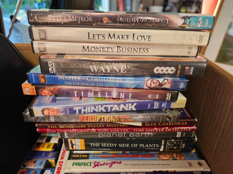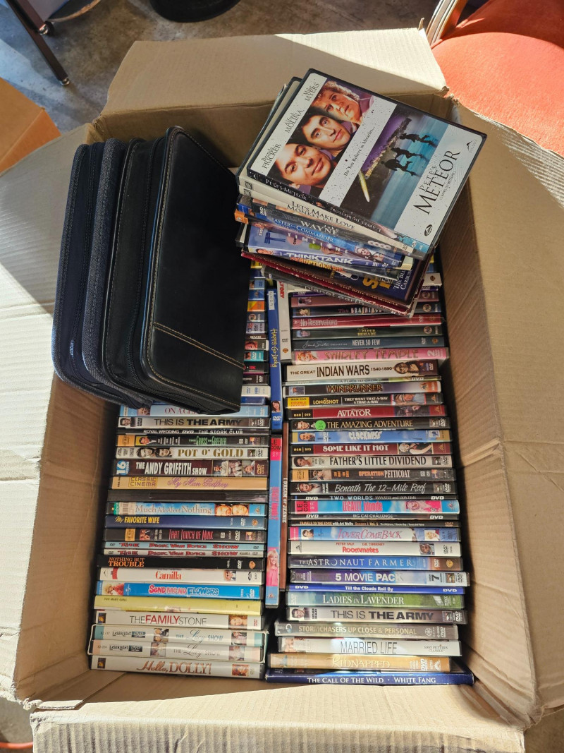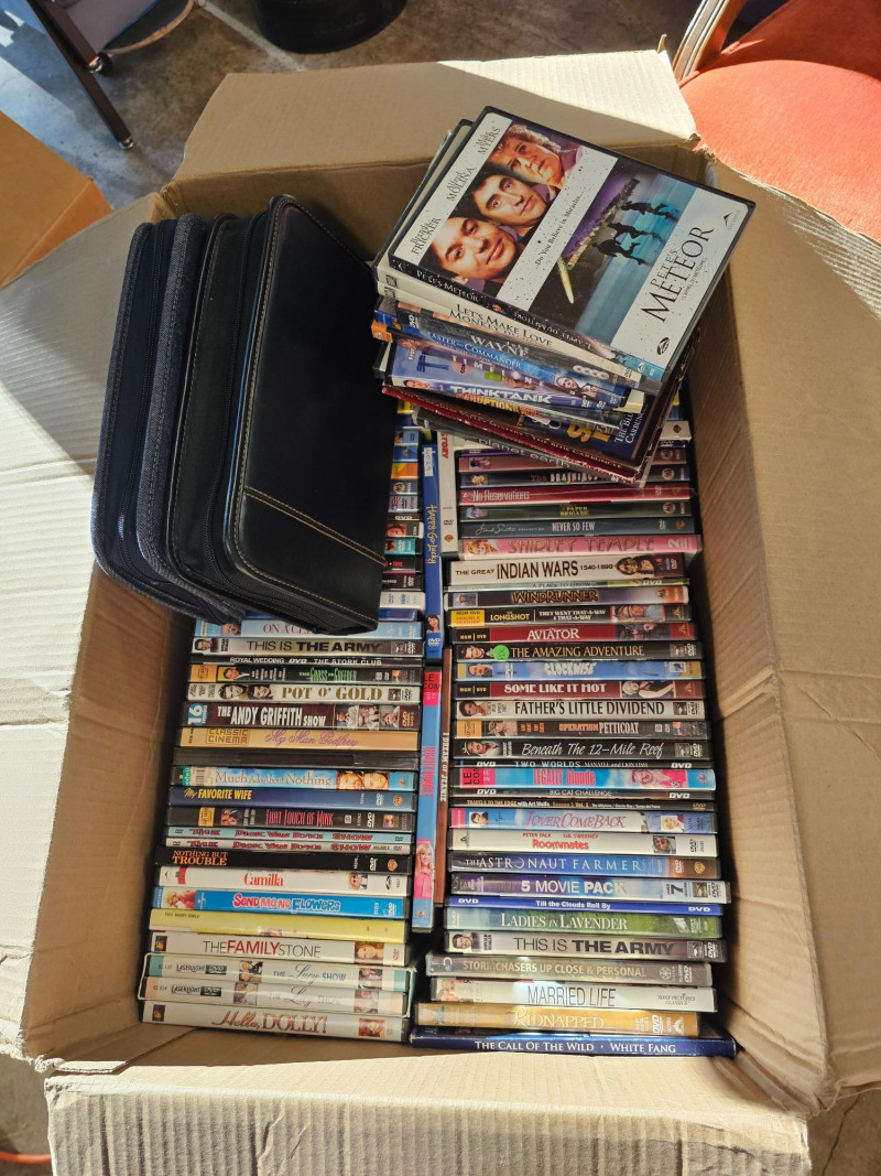 Over 150 DVDs! Everything from John Wayne to I Love Lucy, Napoleon Dynamite to Dirty Dancing Marilyn Monroe, Gary Cooper, John Wayne and more modern movies! Two zipper cases full of DVDs included