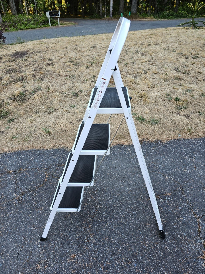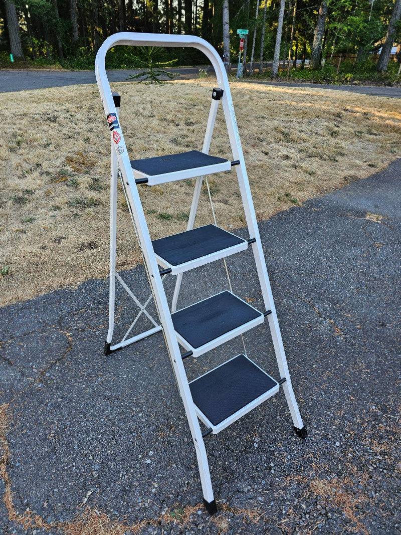 Delxo 3ft Folding Light Duty Step Ladder Top step is 37.5"T 4-step ladder fold for storage Rubber treads for easy footing 51"T x 18"W x 34"D Nearly new condition!