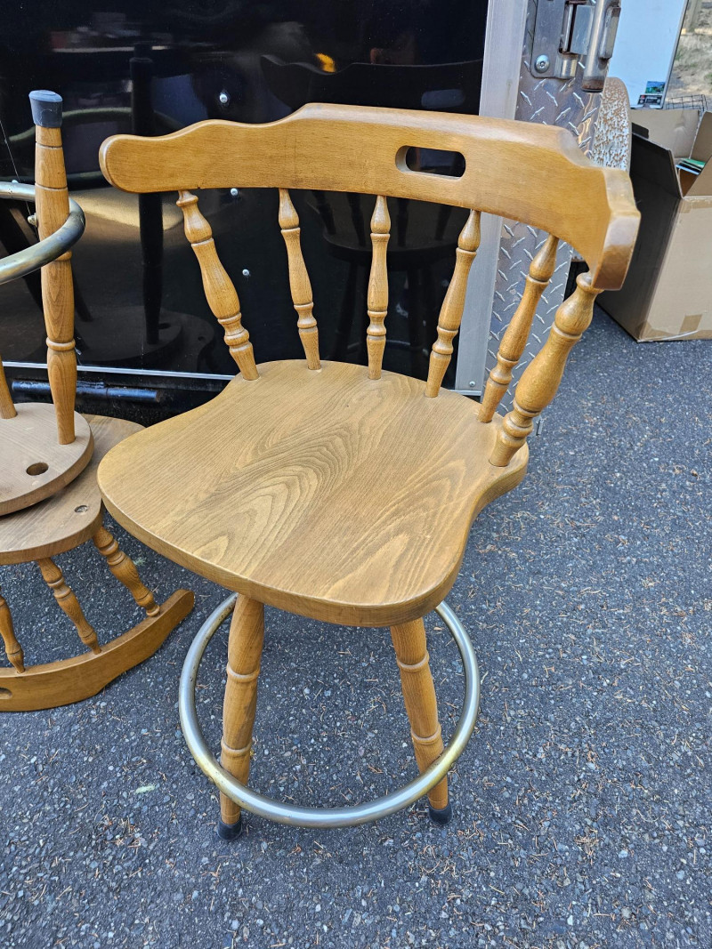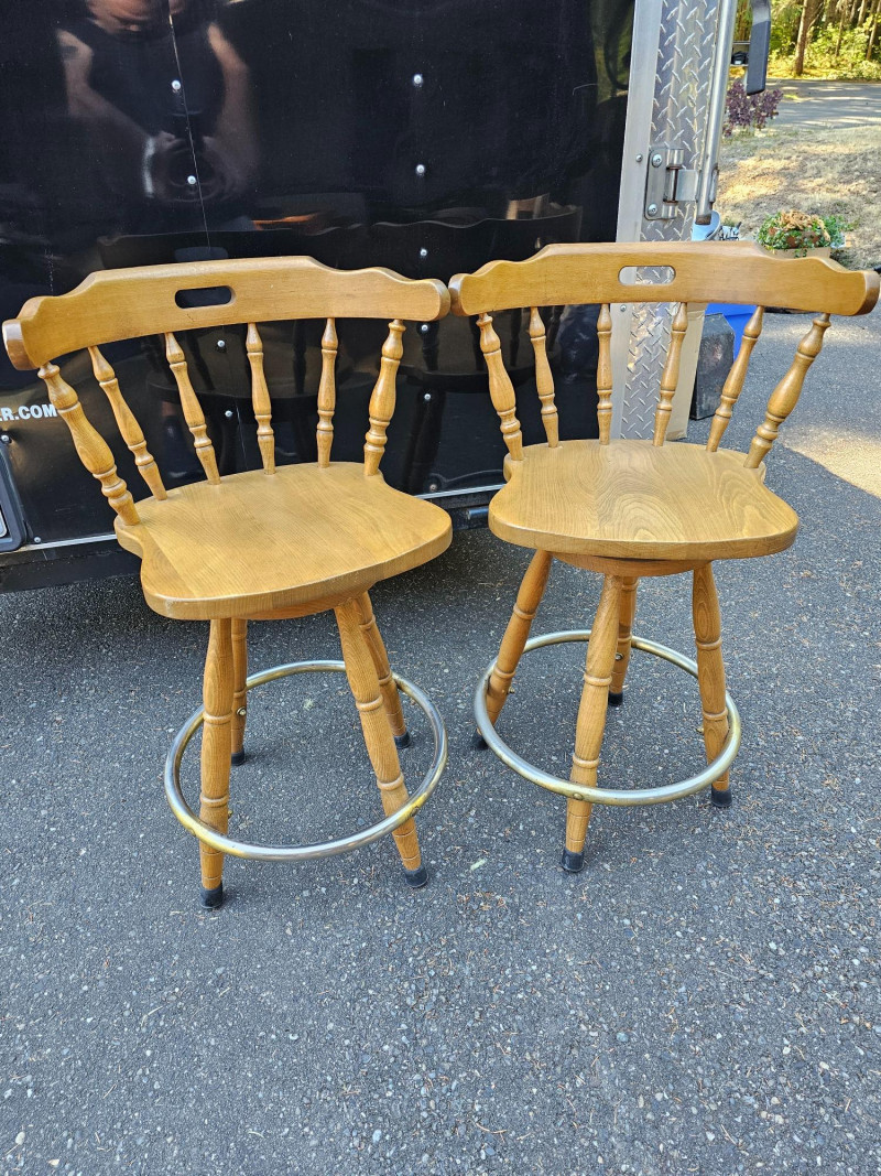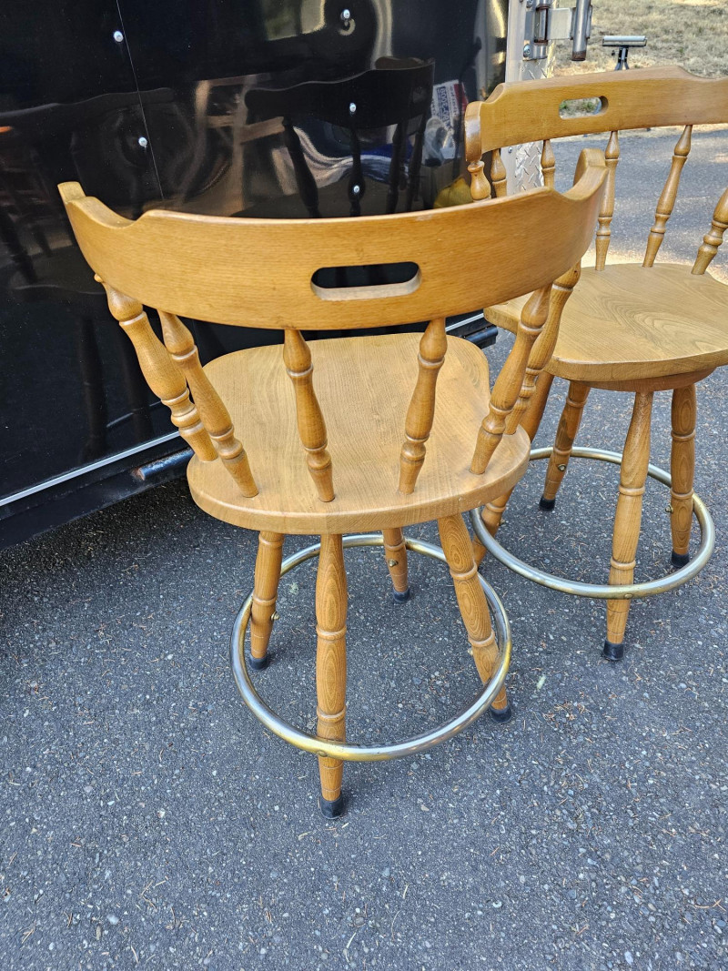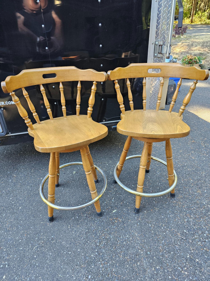 (2) Vintage Wooden Swivel Barstools Really nice condition Rubber feet installed A couple of.marks here and there, but a better example of this style of vintage barstool that I've seen in a long time! 36"T x 19"W x 19"D