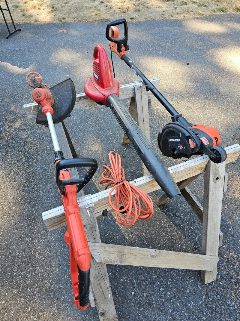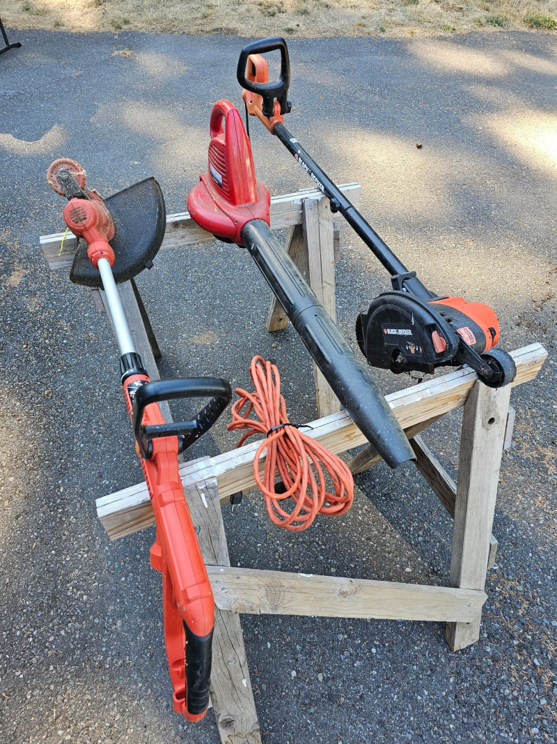 (3) Corded Lawn & Garden Tools (1) Black+Decker Edge Hog - LE750 (1) Troy-Bilt Blower - TB190BV (1) Black+Decker Grass Trimmer/Edger - GH900 (1) Outdoor extension cord All Tested - All Work!