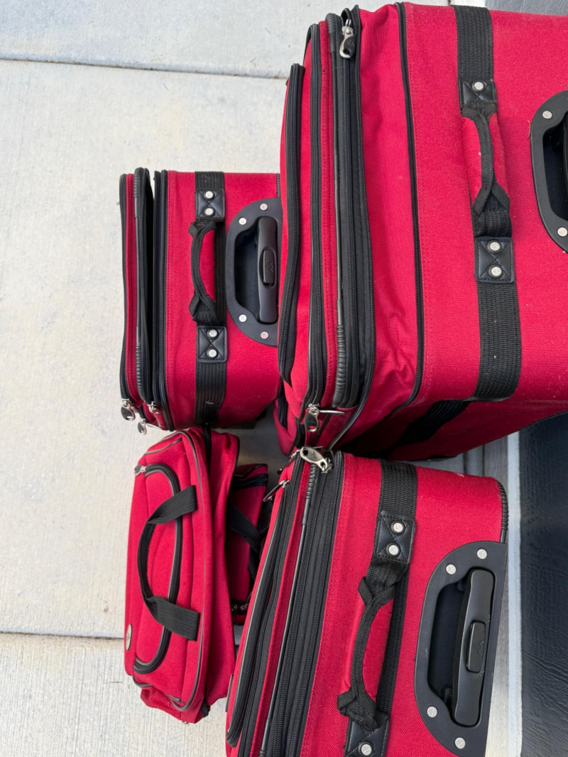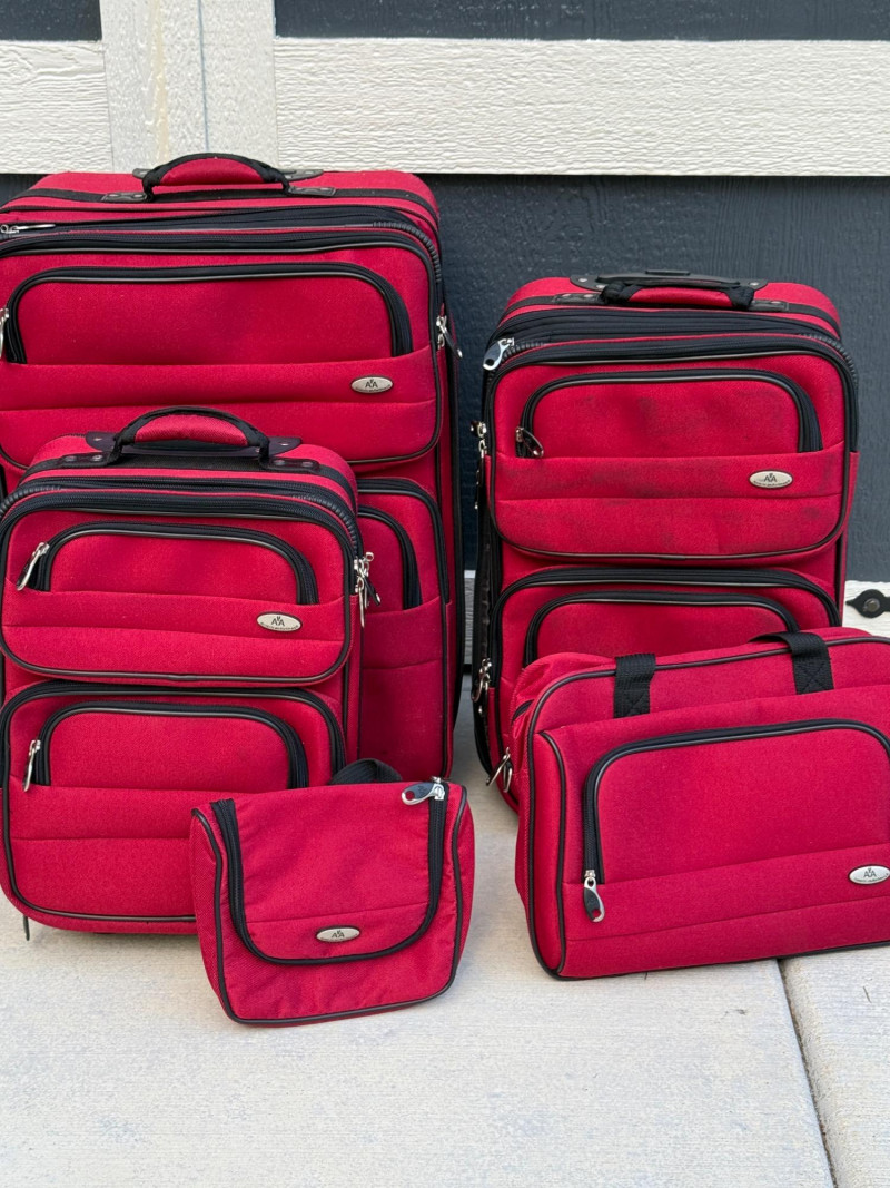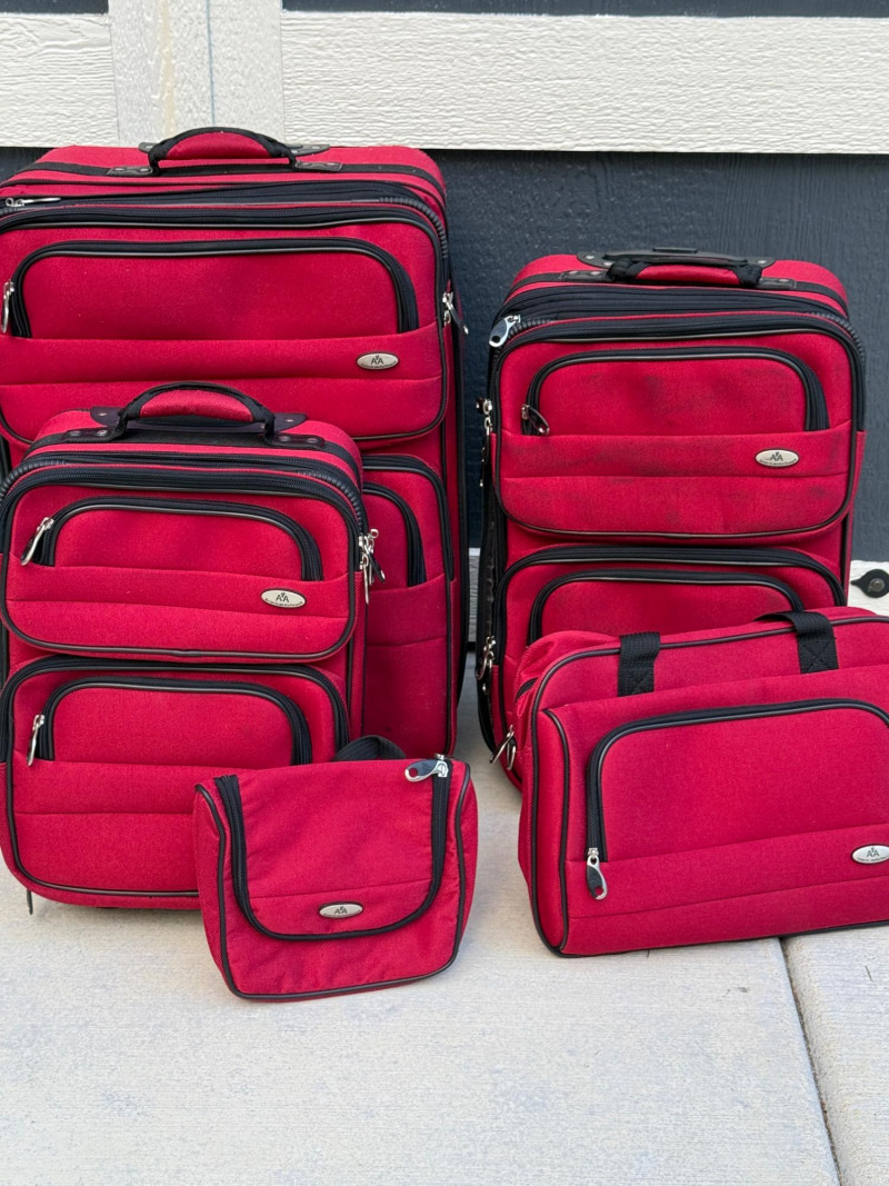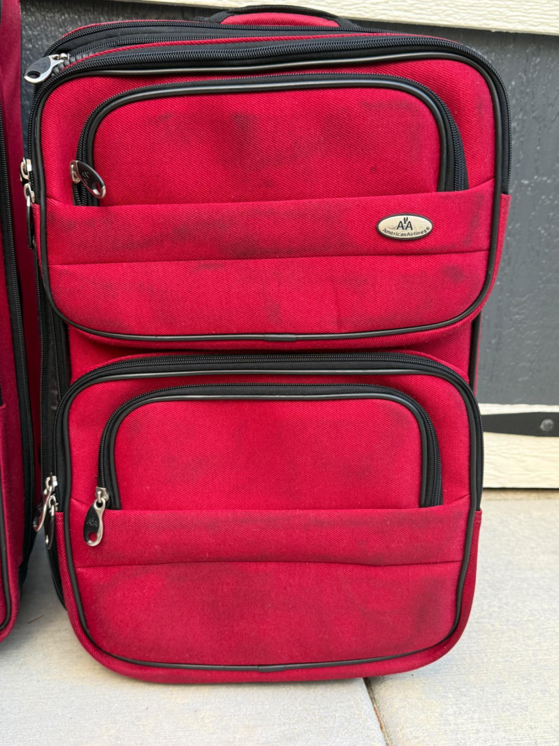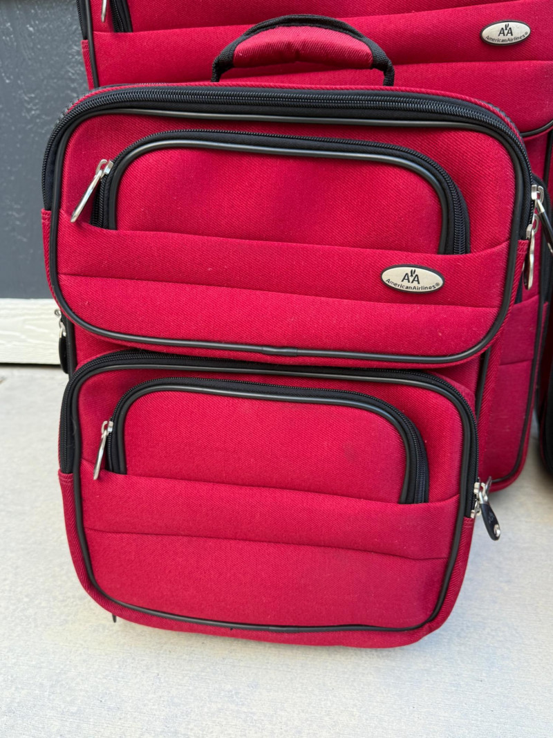 American Airlines 5 Piece Luggage Set Red canvas American Airlines luggage set.