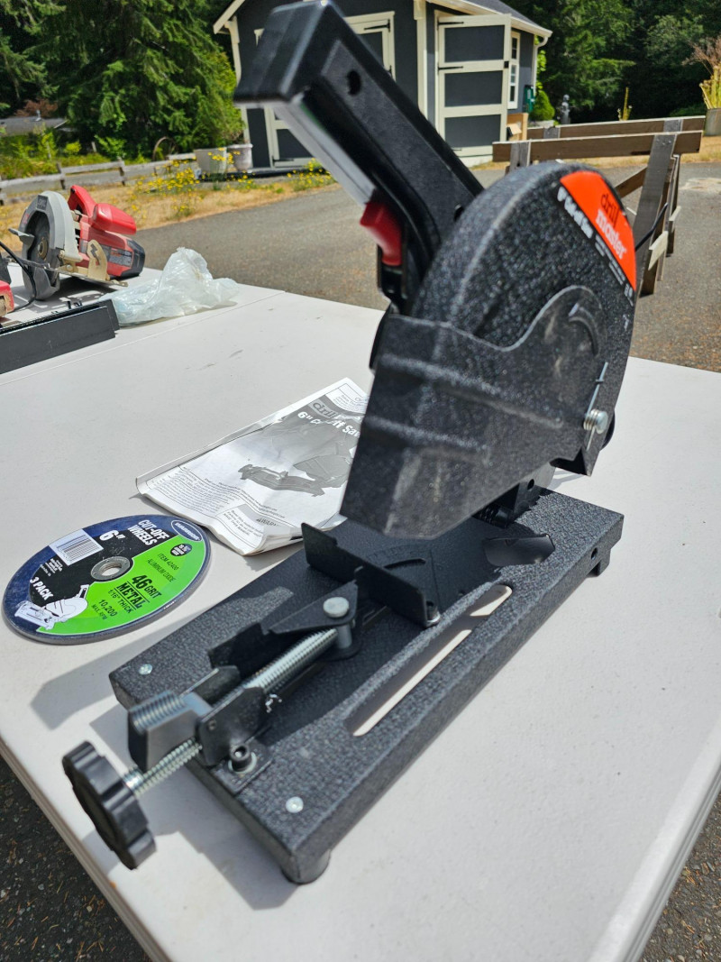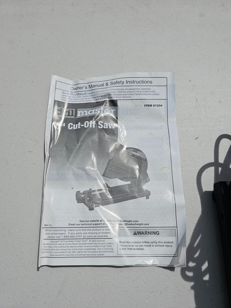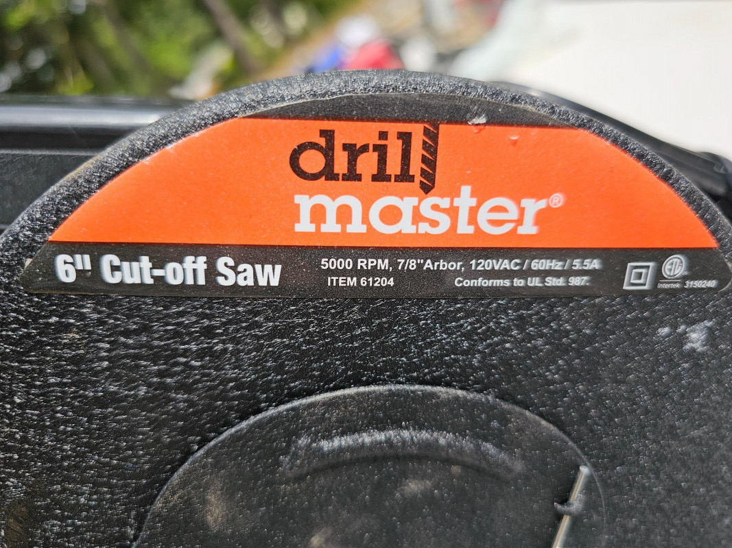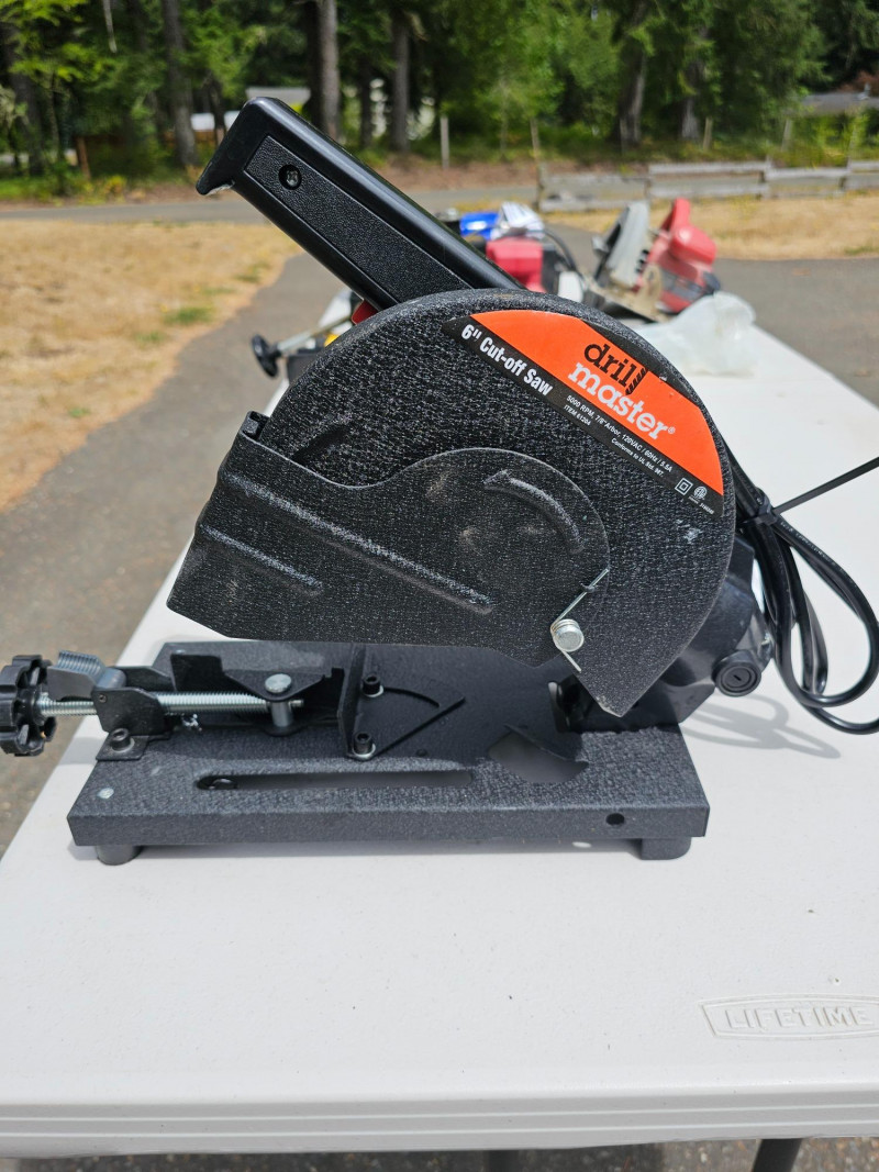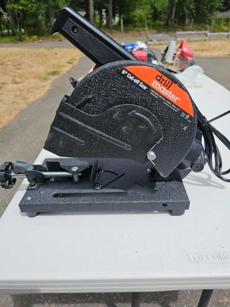 Drill Master 6" Cut-Off Saw With 3 New Cut-Off Wheels Part #61204 Appears lightly used Includes 3 new in package 46grit cut-off wheels & manual 13.5"T x 6"W x 14"D Tested - Works!