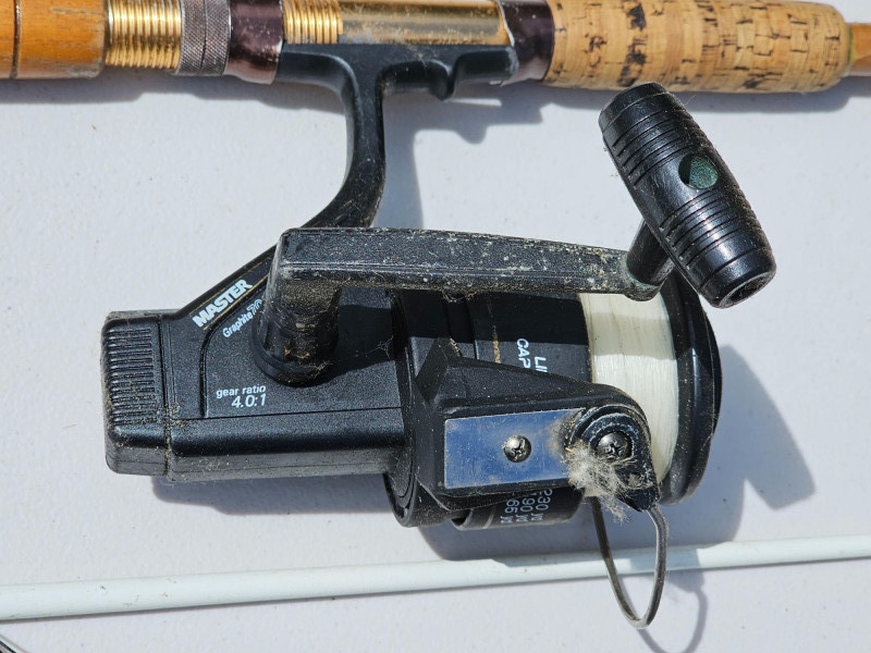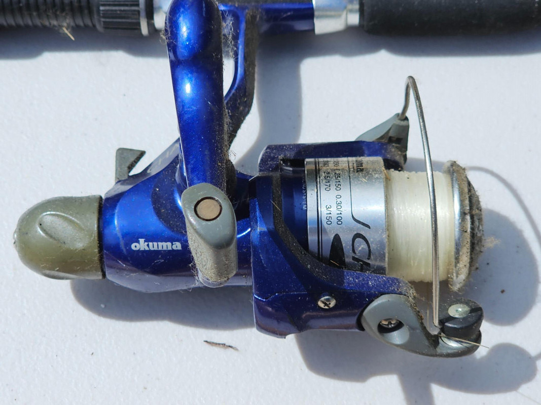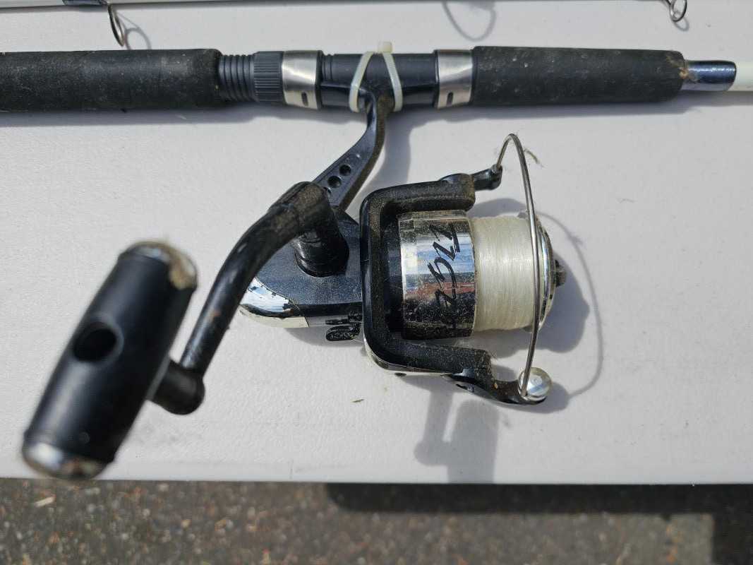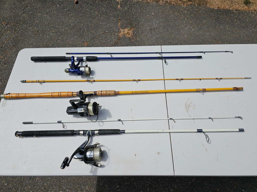 (3) Fishing Rods & Reels (1) Shakespeare Tiger Reel & WMTSP 70 2M 7ft Action: Medium (8-15lb Line) 01B11BK (1) Master Graphite 706 Reel & Eagle Claw Granger Heavy Duty No. M8485TR - 8.5ft Drift Casting Rod (1) Okuma Chaser Reel & Fin-Chase 7.5ft Rod All appear to be in decent used condition!