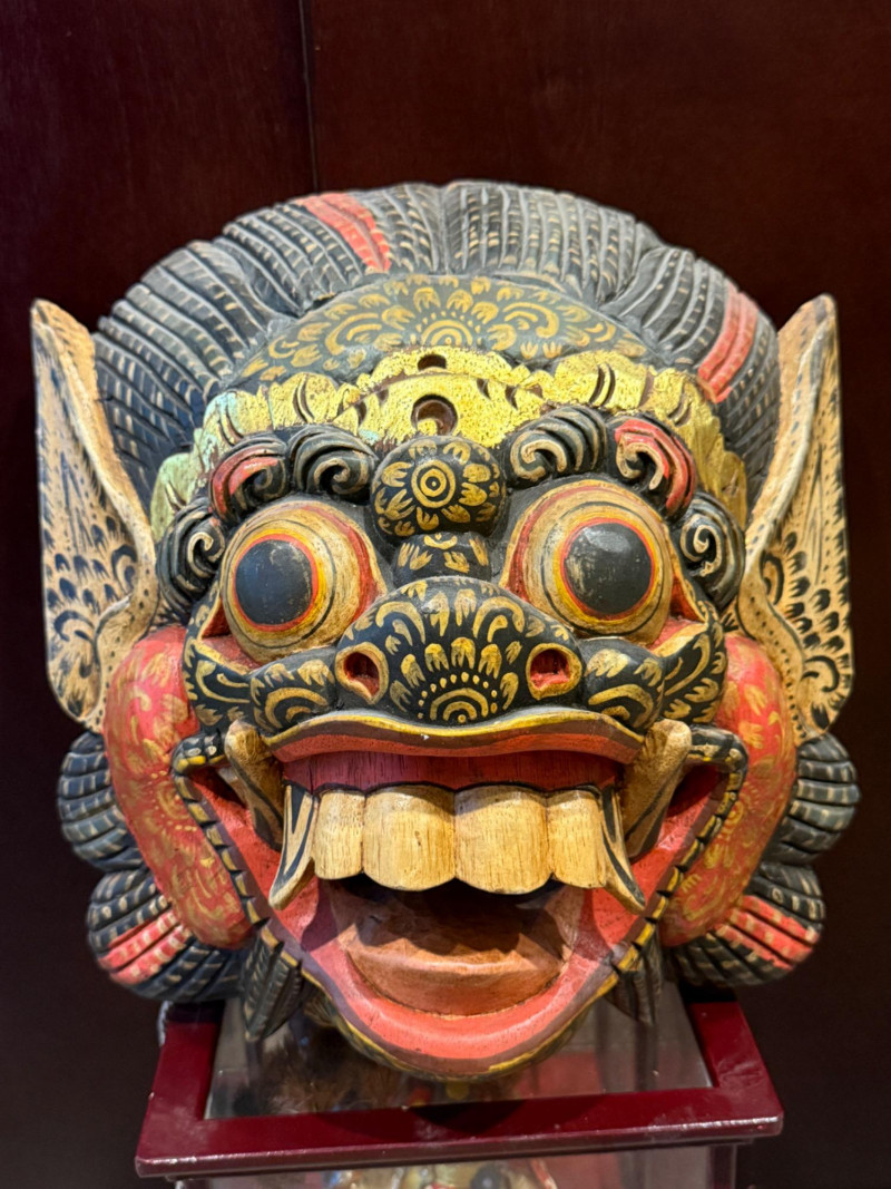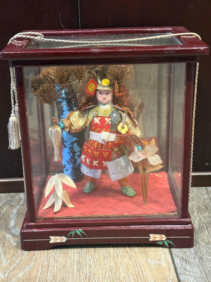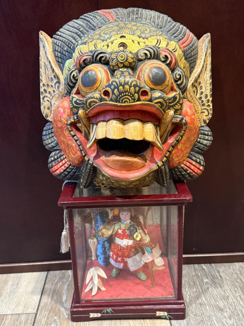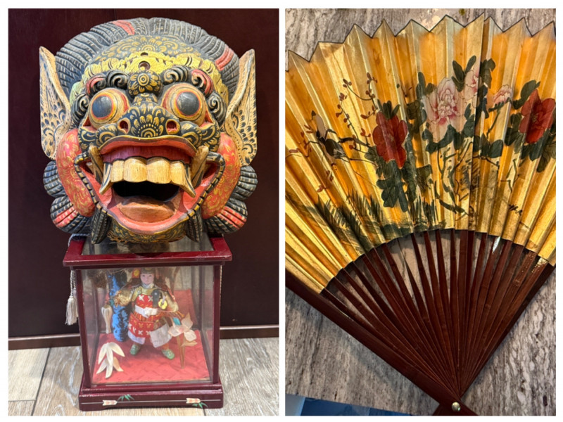 40” Chinese Painting Fan - Boys Day Doll - Bali Mask 40” Chinese Painting Fan Tango no sekku Japanese Boys Day Doll in wood framed glass case 8x6x9” Hand carved and painted Balinese Barong Mask 11x12” Vivid colors and gold accents.