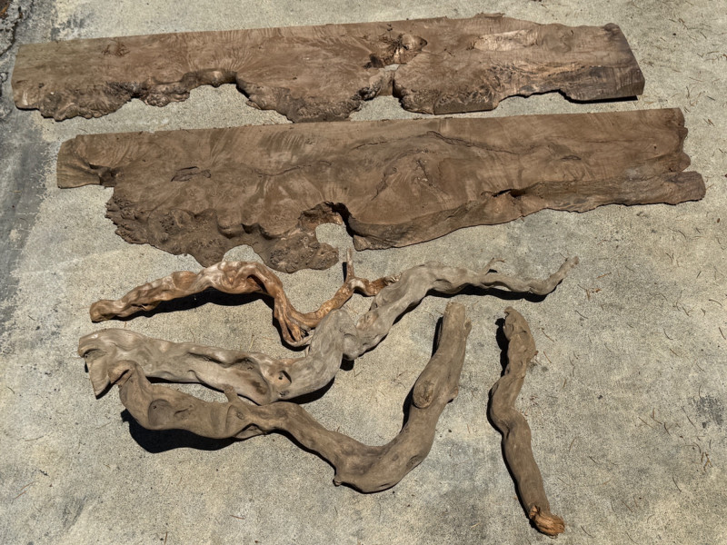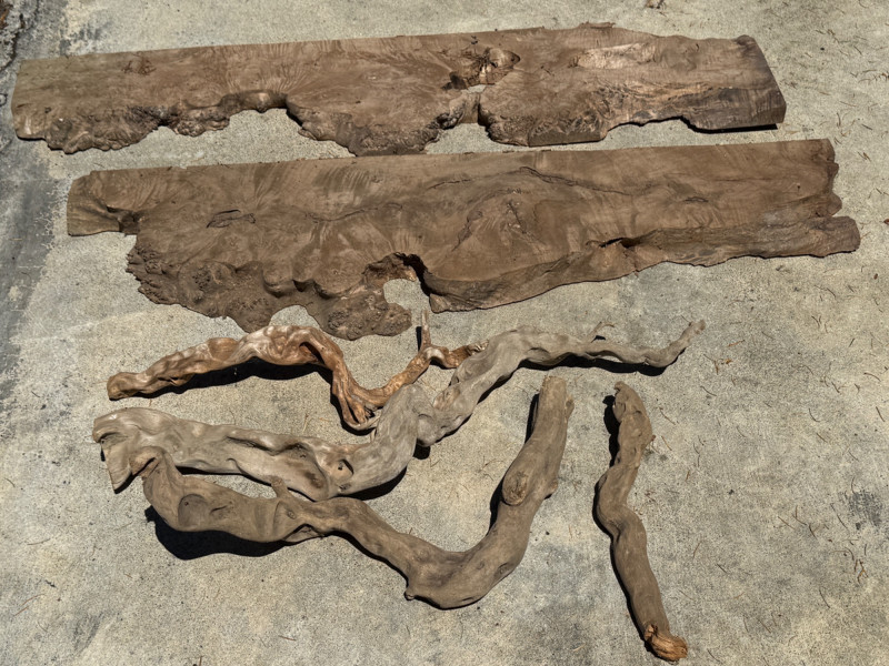 Lot # 270 - Walnut Burl Wood Slabs & Twisted Driftwood