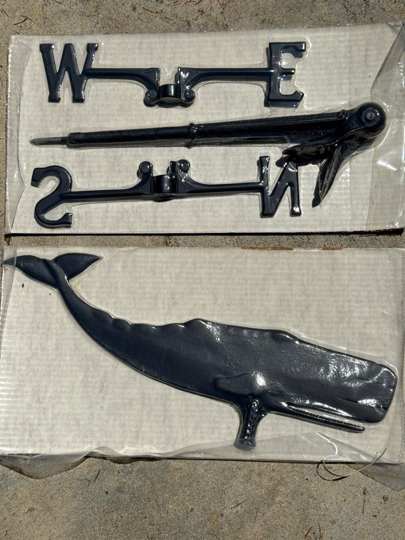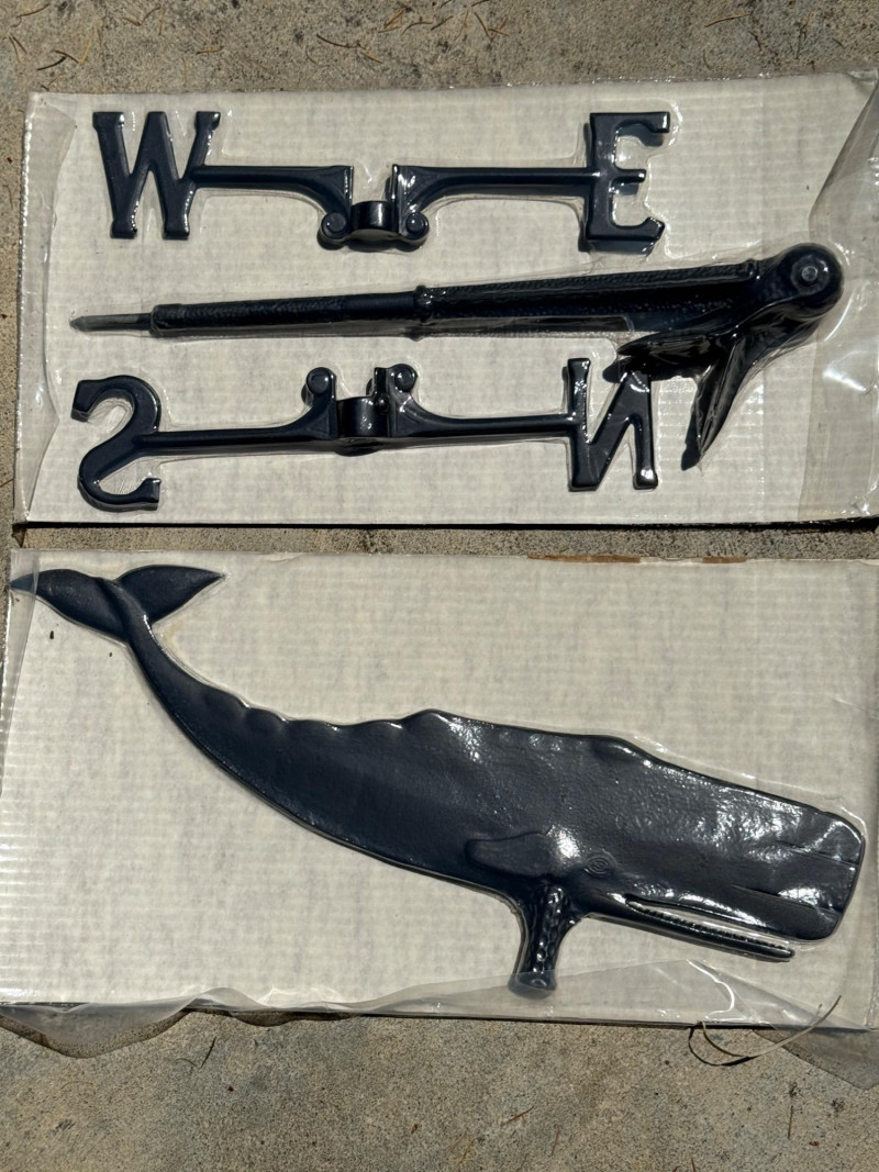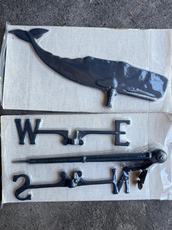 NEW Whale Weathervane Black Aluminum weathervane. Never out of the packaging. Whale is 23” and 15.25” N/S E/W