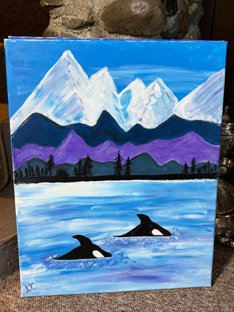 Orcas & Mountains Original Acrylic Painting