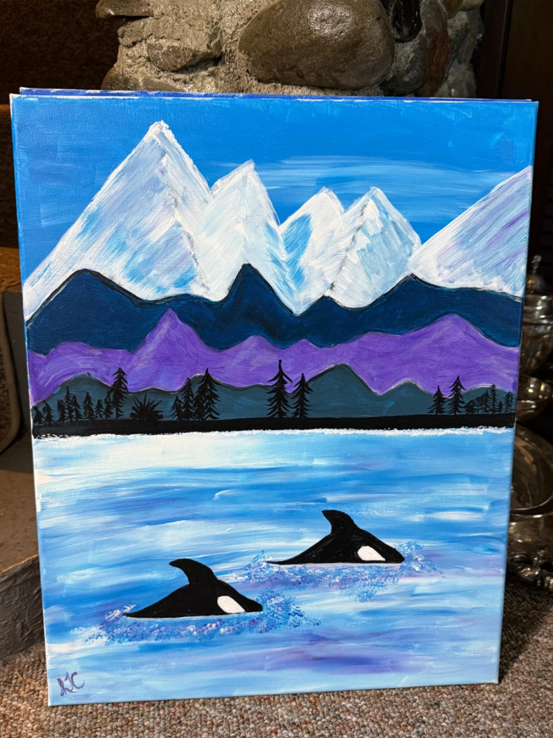 Lot # 281 - Orcas & Mountains Original Acrylic Painting
