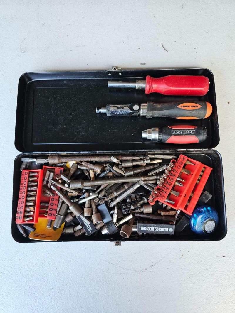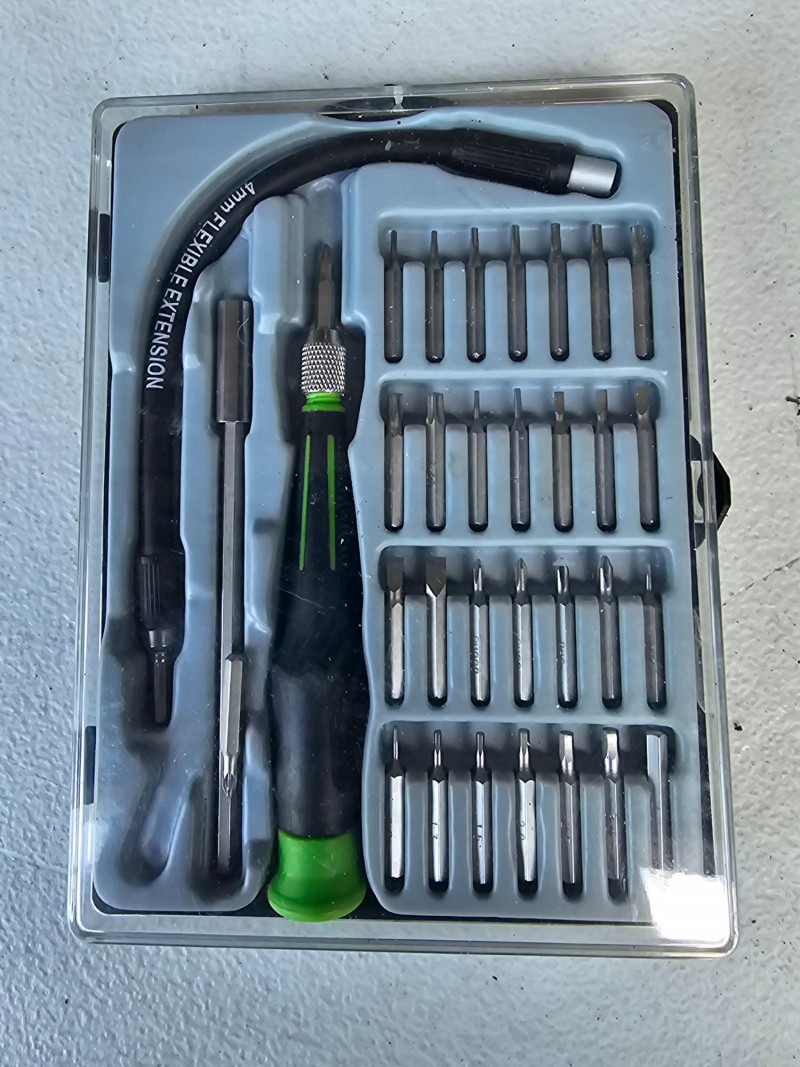 Set Of Misc Multi-Bit Screwdrivers & Mini Screwdriver & Bits 3 screwdrivers with a box full of bits Set on mini screwdriver with Mini Bits set & flexible extension