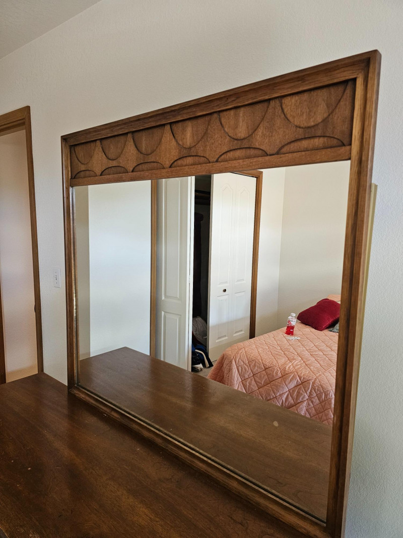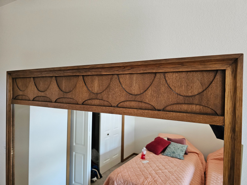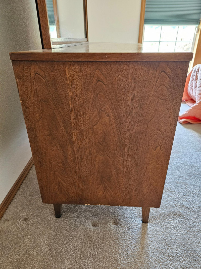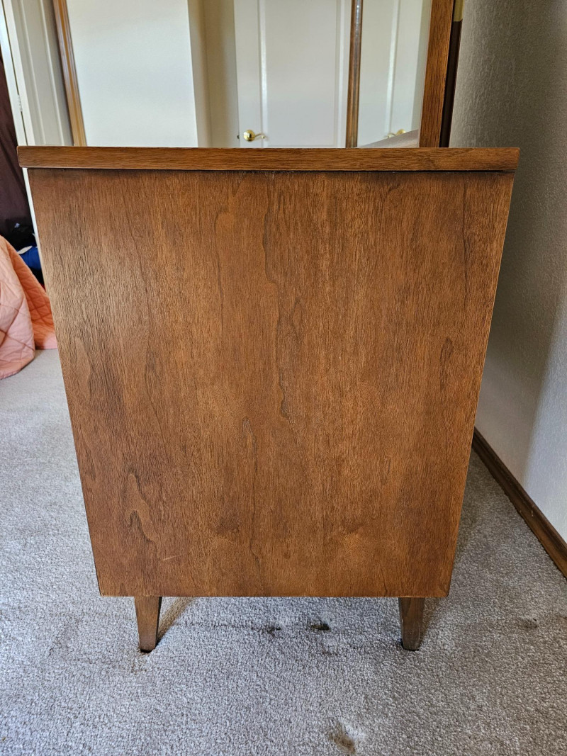 Lot # 2 - MCM Walnut Lowboy Dresser & Matching Mirror