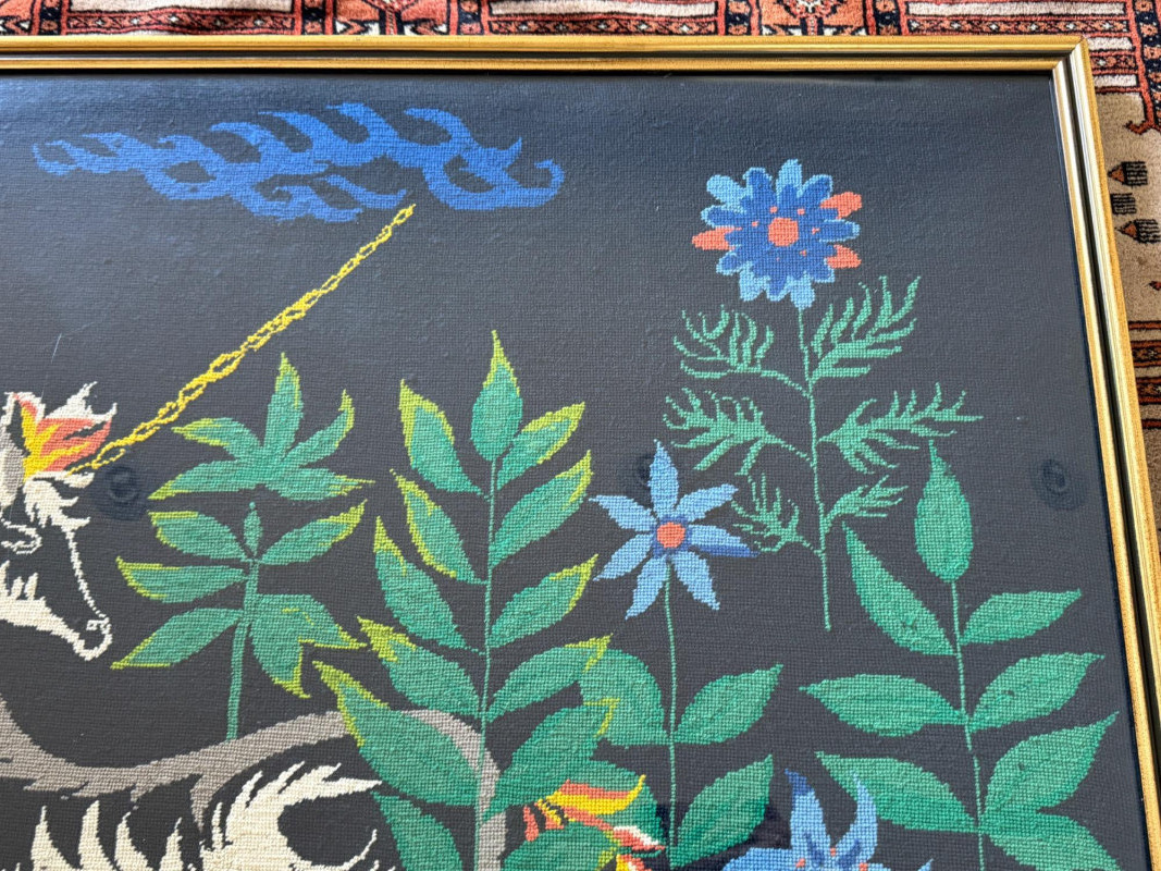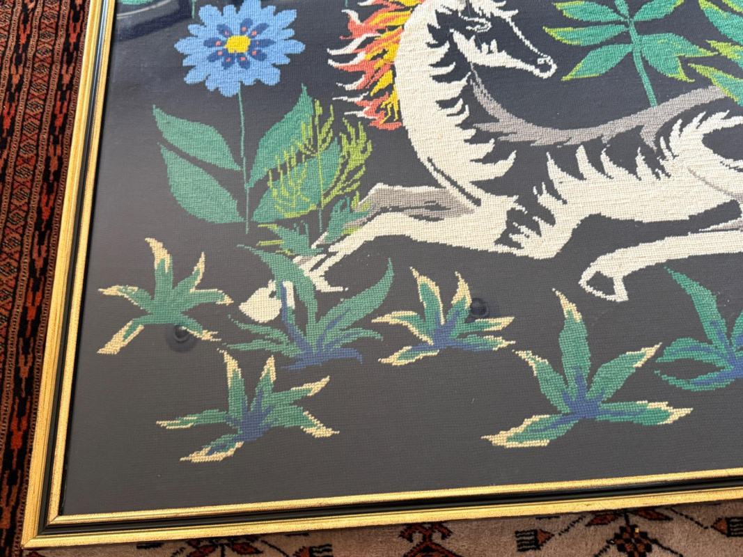 Lot # 15 - Massive Framed Handmade Unicorn Needlepoint