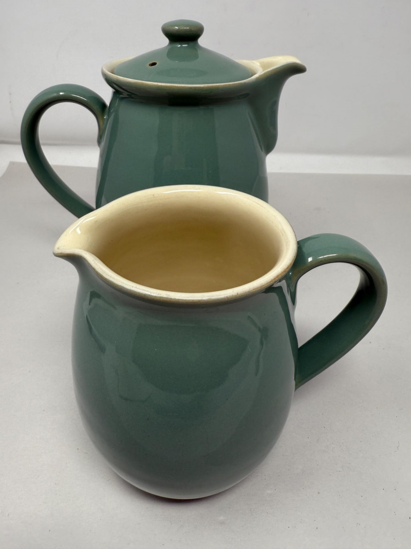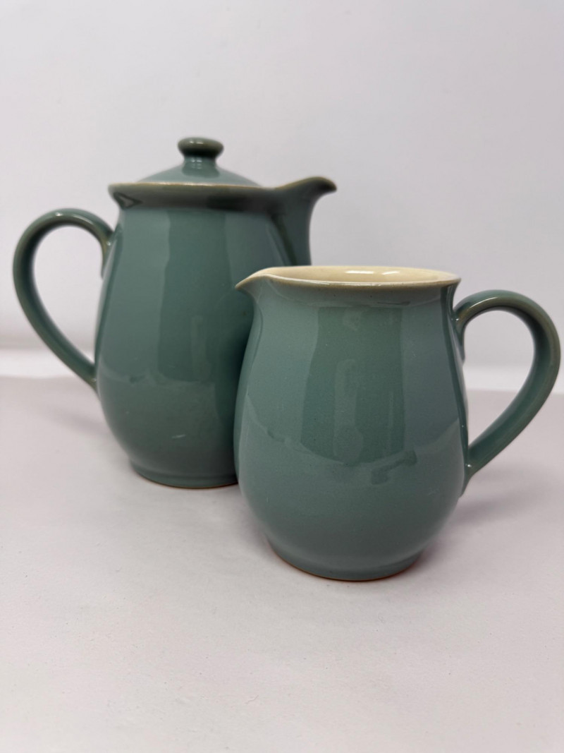 Denby Stoneware England Carafe and Pitcher. 2 1/2pt and 1pt capacities.