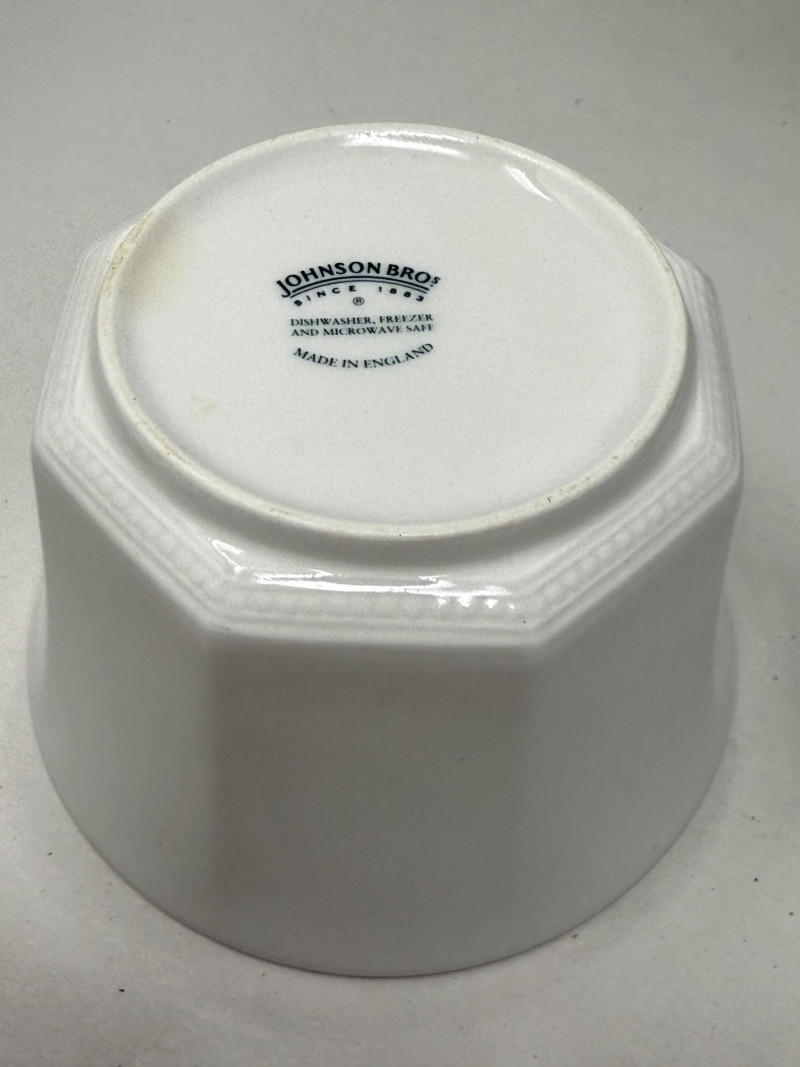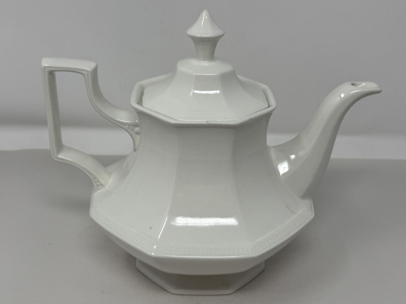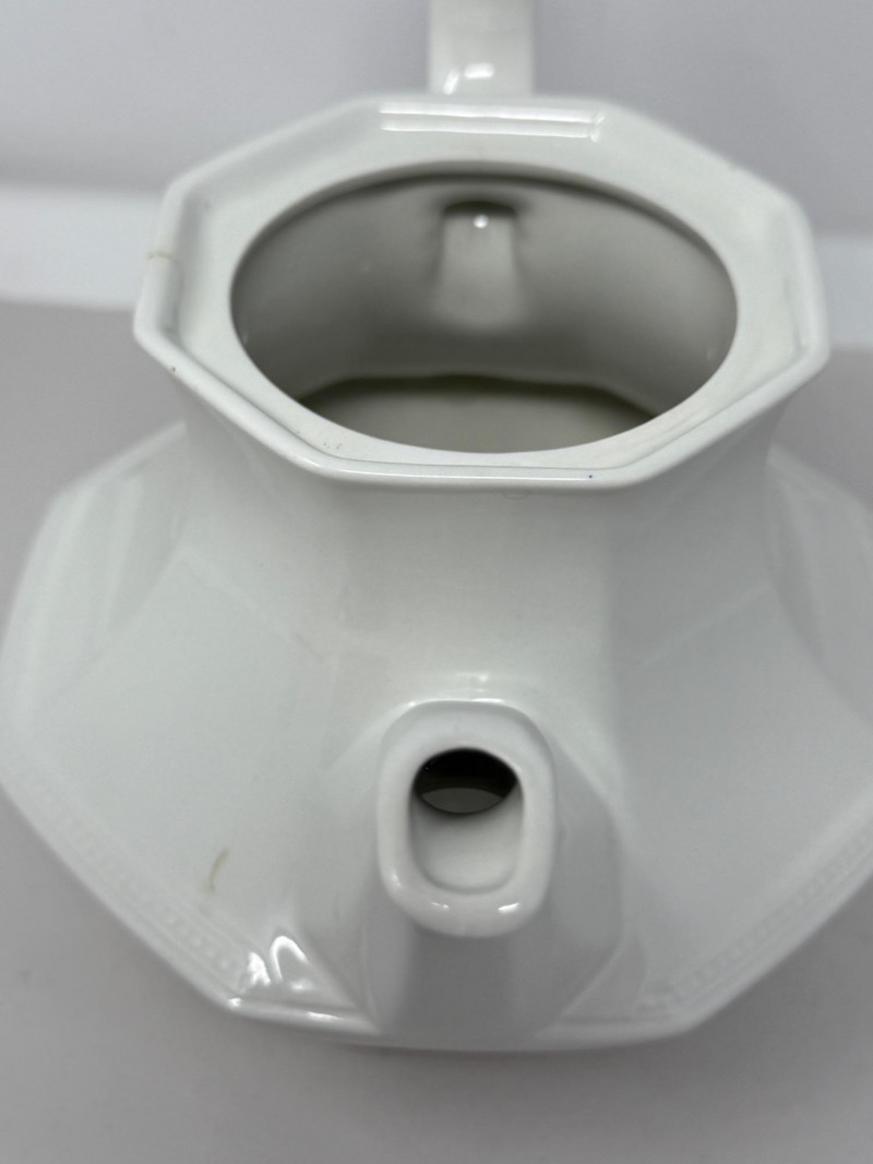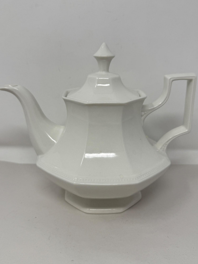 Johnson Bros Heritage White English Teapot and Bowl 4 pint teapot stamped Made in England.