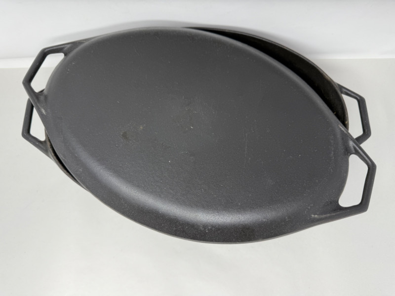 They are made of porcelain-enameled cast iron, a material that was an industry first for cookware at the time. 15.5x9x5.25”