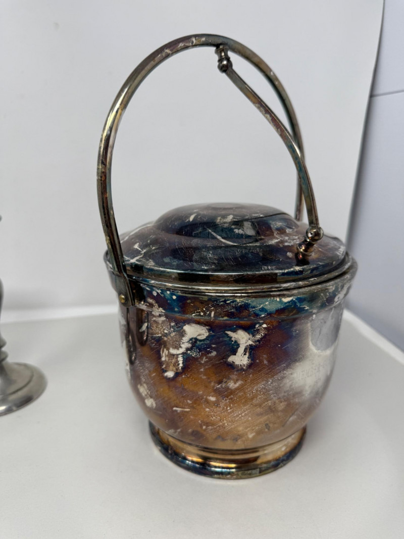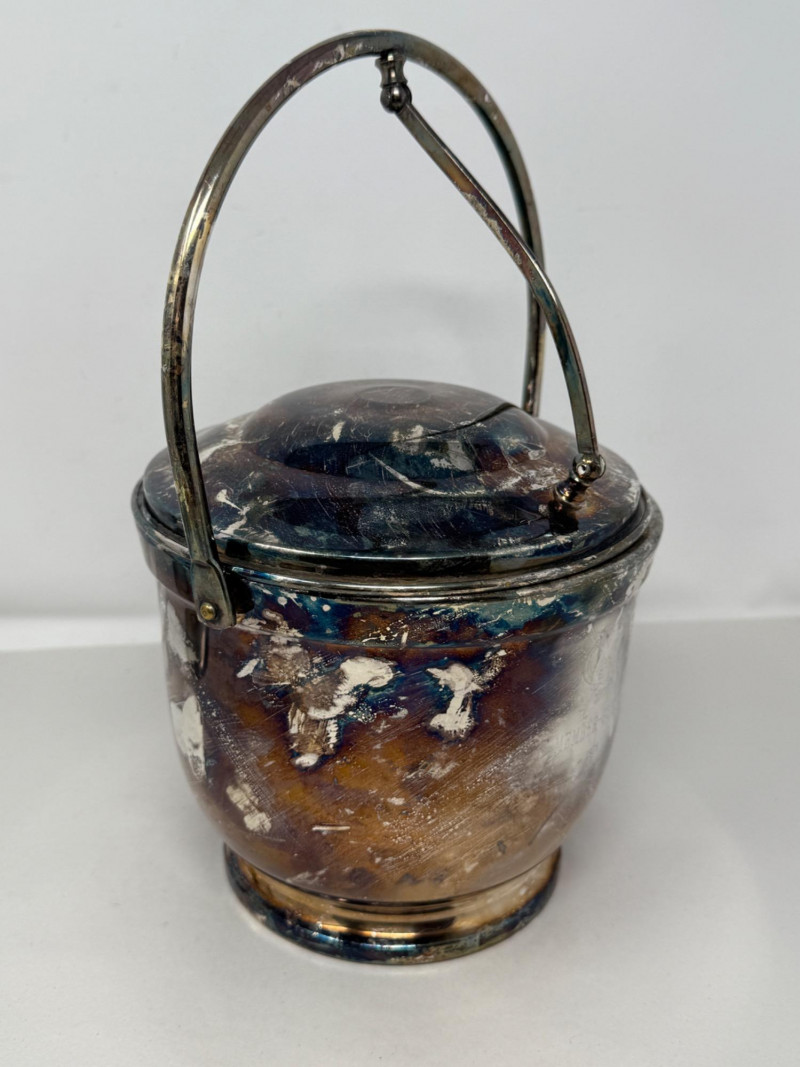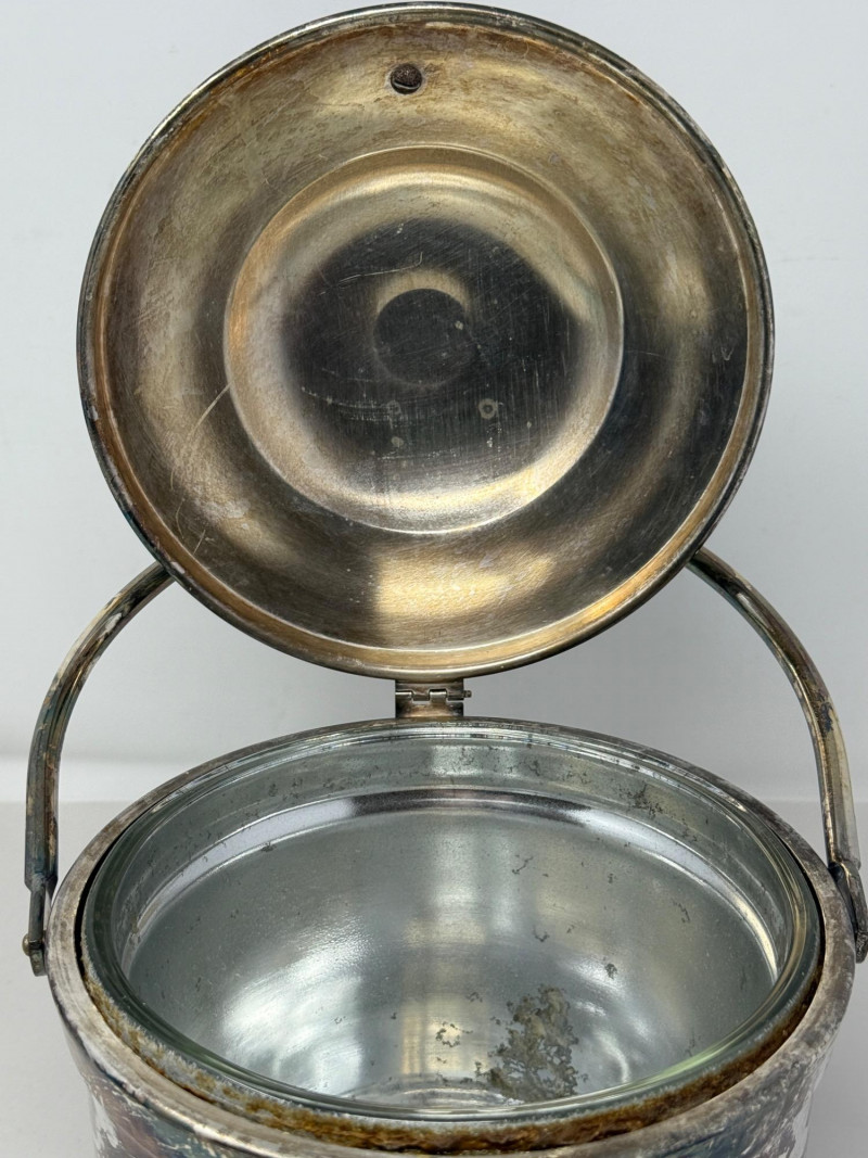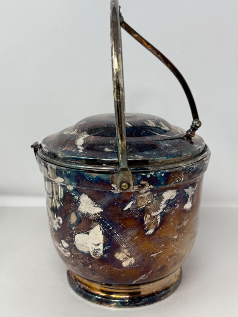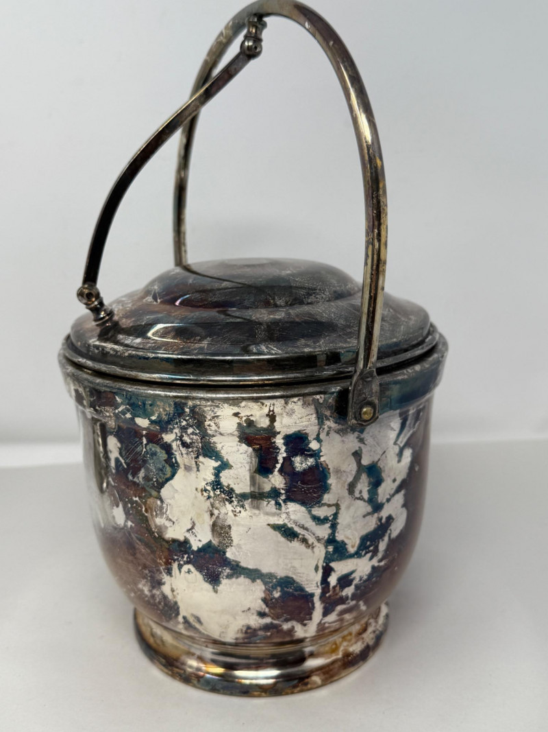Vintage silver-plated ice bucket, specifically a "Bristol Silverplate" design made by the Poole Silver Company in the 1950s. Awesome patina. 8.25”x12”