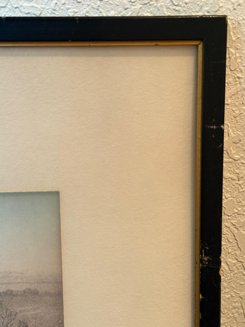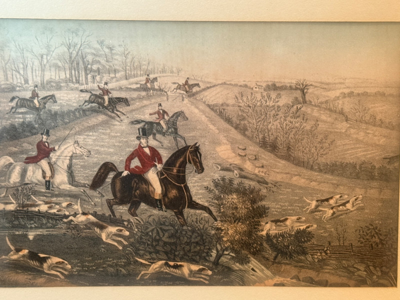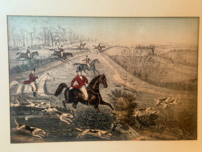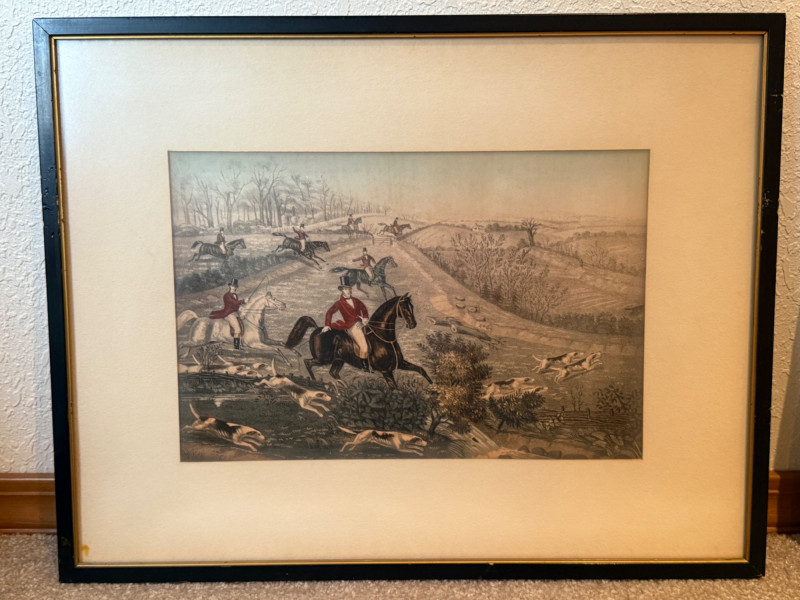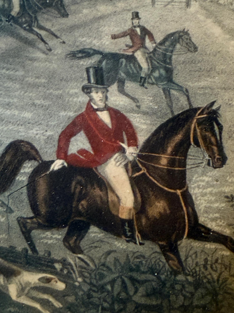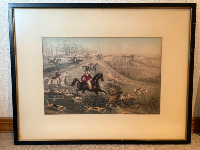 This print is part of a set of four fox-hunting scenes by Charles Hunt, which also includes "The Meet," "Full Cry," and "The Death" “Breaking Cover” by British Artist Charles Hunt Published around 1838 Matted and under satin glass in black wood frame and gold accent. 20x15.5”