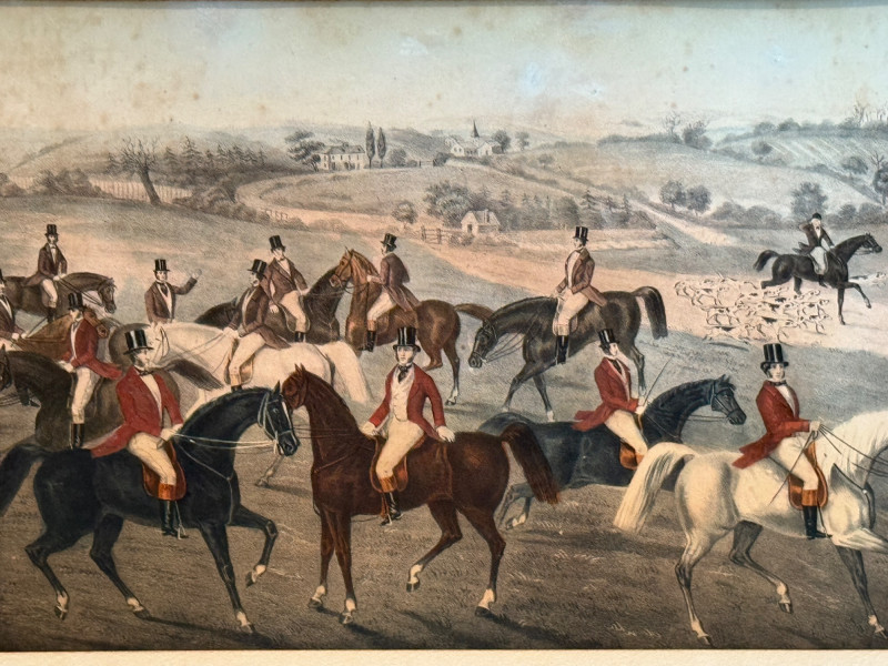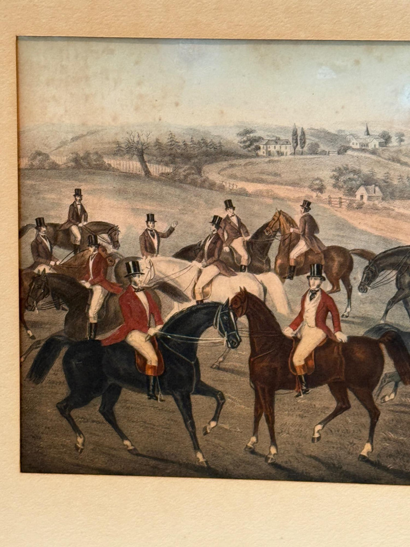 "The Meet," Plate I from the "Fox Hunting" series of engravings by Charles Hunt Senior. This print is part of a set of four fox-hunting scenes by Charles Hunt, which also includes "The Meet," "Full Cry," and "The Death"