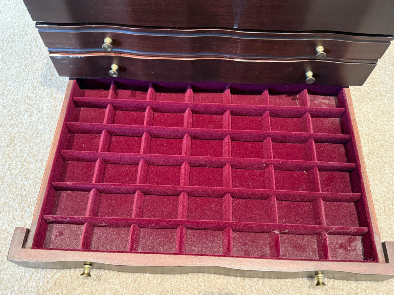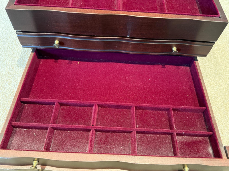 Lot # 38 - 3 Drawer Velvet Lined Mahogany Jewelry Chest
