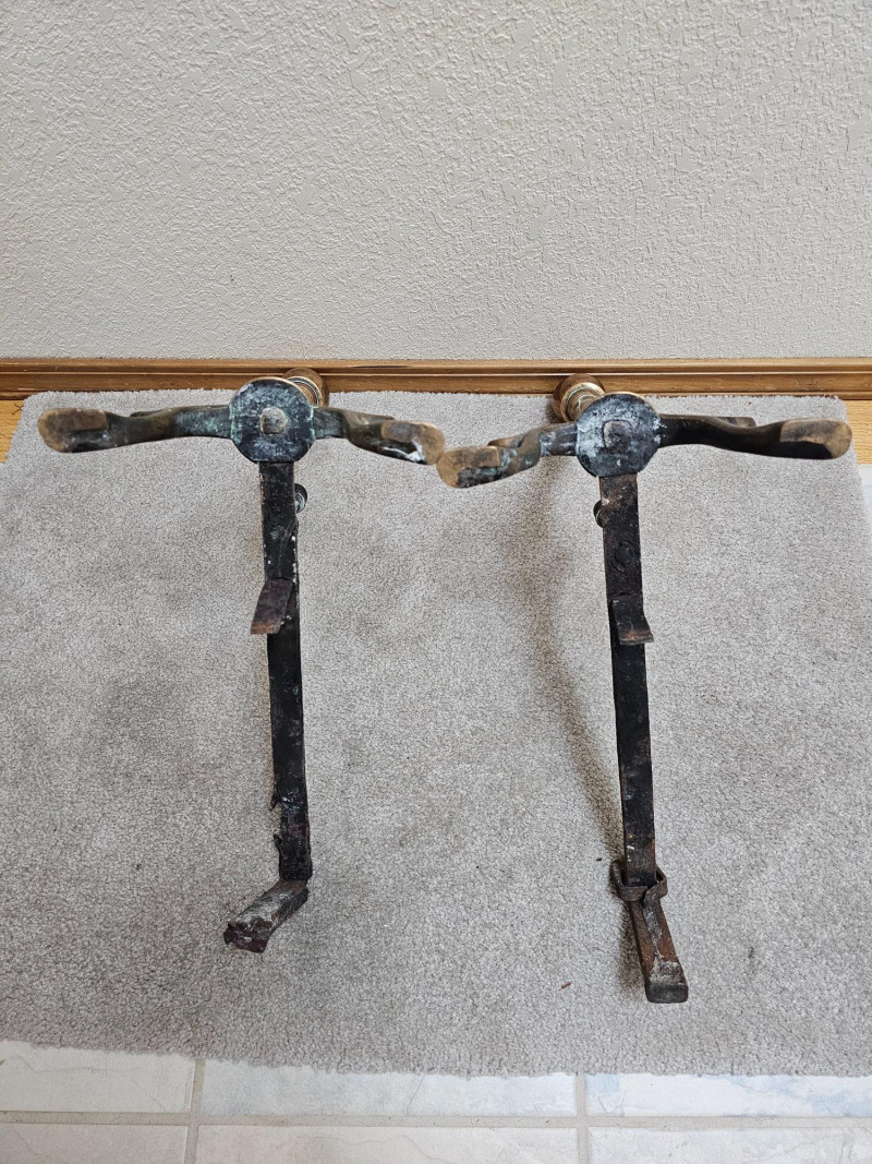 Lot # 43 - Pair Of Antique Brass & Iron Andirons