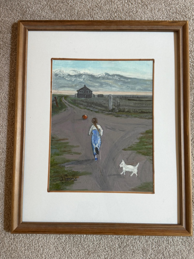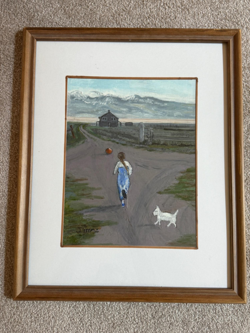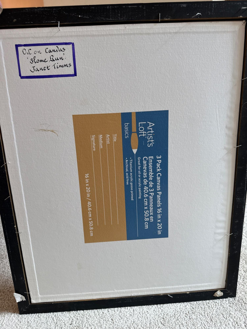 “Home Run” Original Oil on Canvas by Janet Timms measures 18”x22” Wood frame with matting under glass