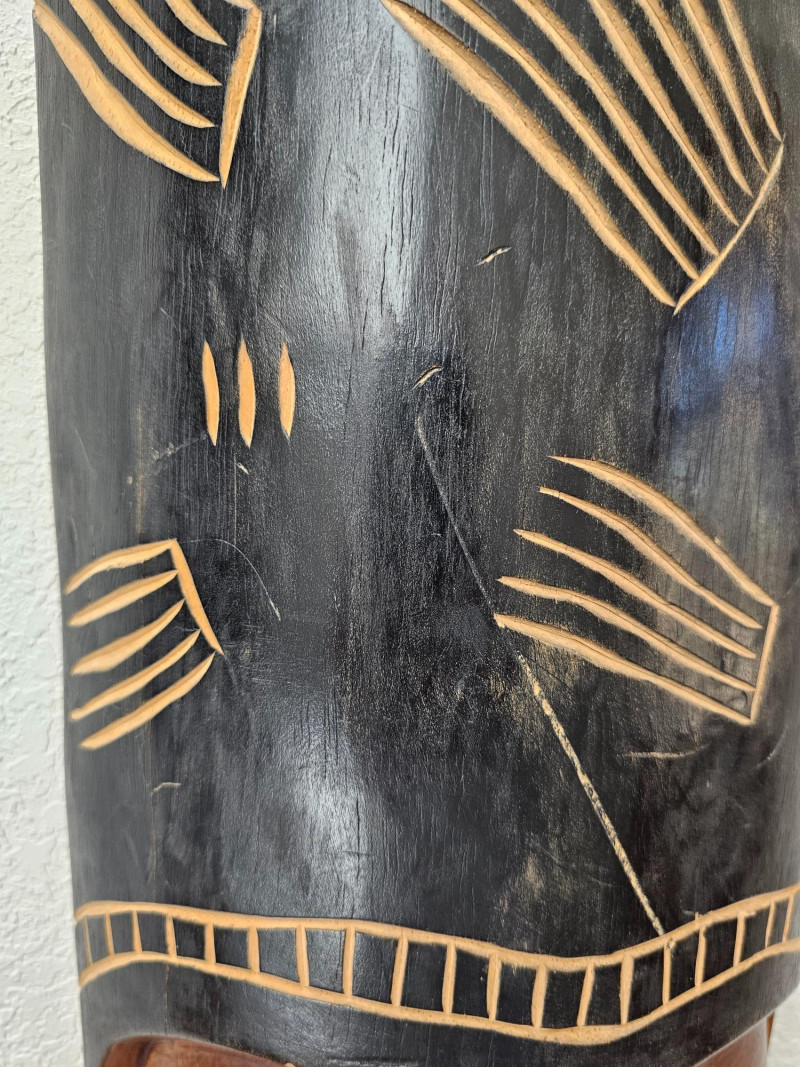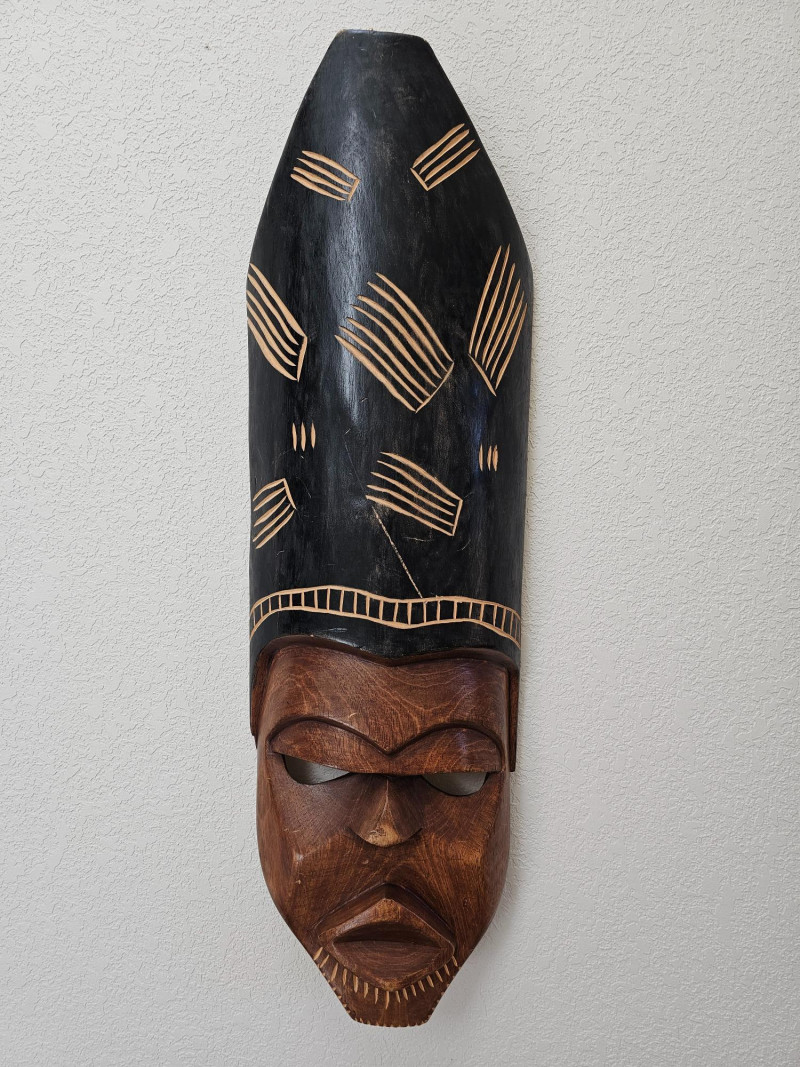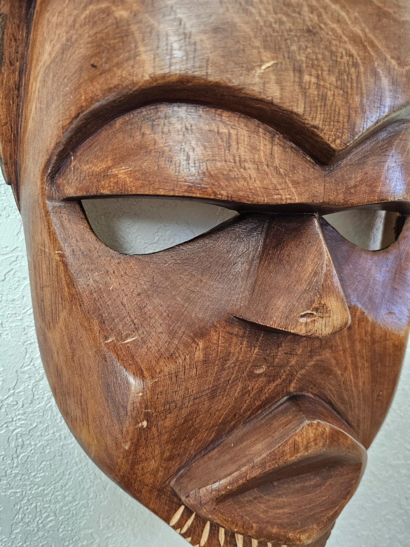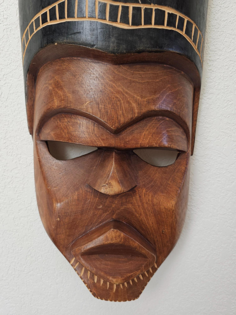 Vintage Hand-Made African Tribal Wood Mask Beautifully hand carved wooden mask acquired while in Africa many decades ago Exquisite detail and coloring A few scratches expected on a vintage piece (see pics for condition) Ready to hang on the wall! 30.5"T x 9.5"T x 3"D